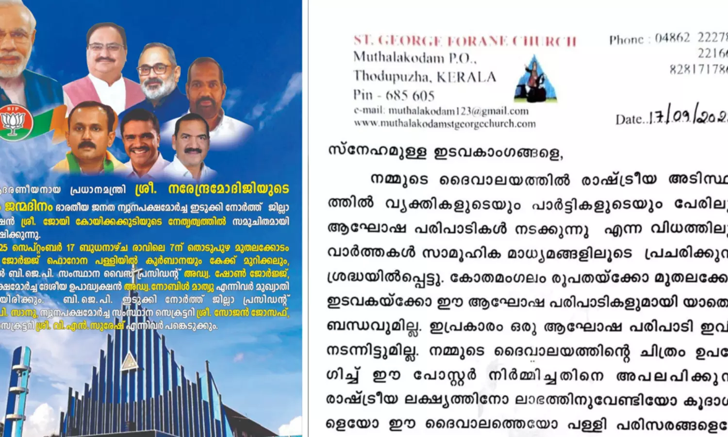 പ്രധാനമന്ത്രിയുടെ ജന്മദിനം മുതലക്കോടം പള്ളിയിൽ ആഘോഷിക്കുമെന്ന് ബിജെപി പോസ്റ്റർ; നിഷേധിച്ച് ഇടവക വികാരി