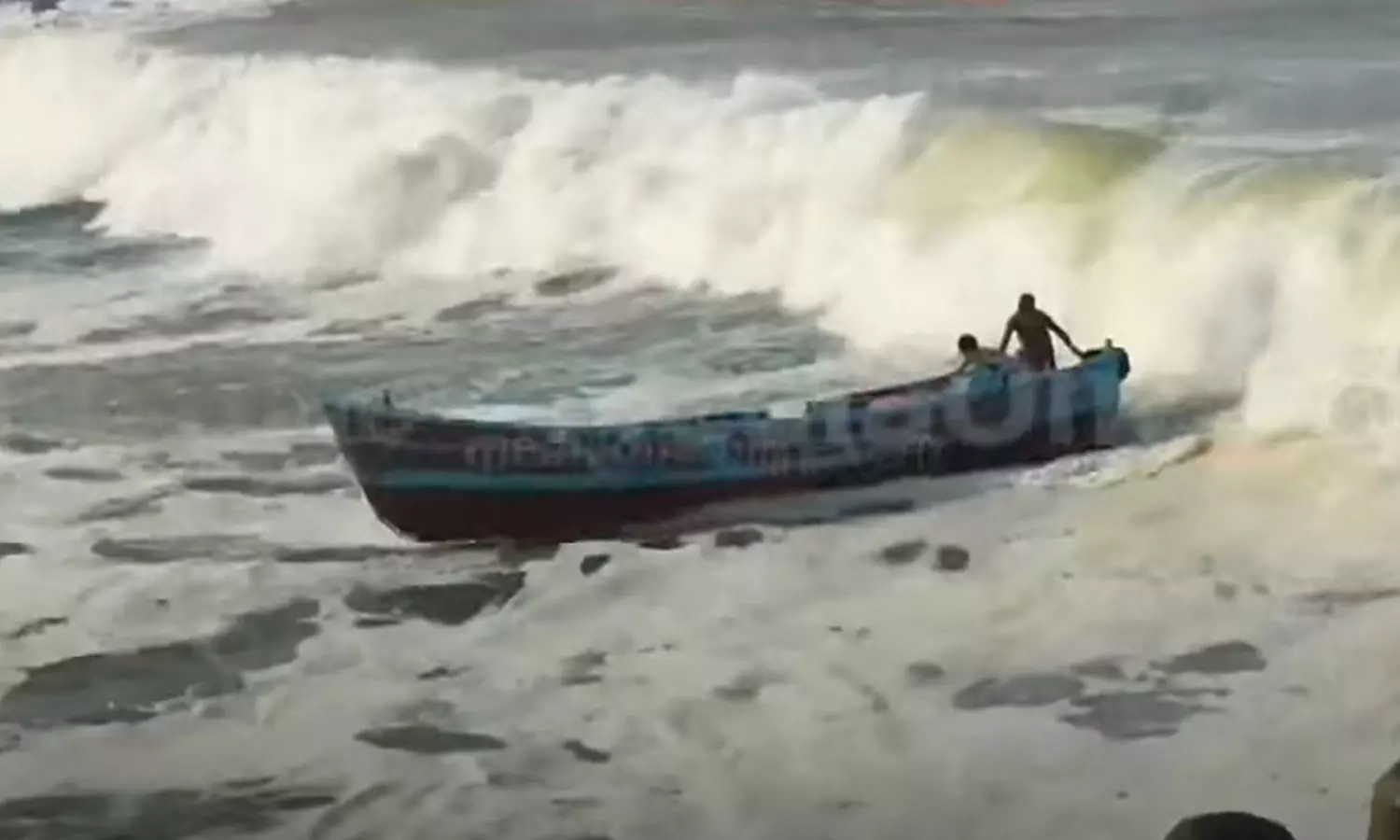 ശക്തമായ തിരമാലയിൽ നിയന്ത്രണം വിട്ട ബോട്ട് പുലിമുട്ടിൽ ഇടിക്കുകയായിരുന്നു
