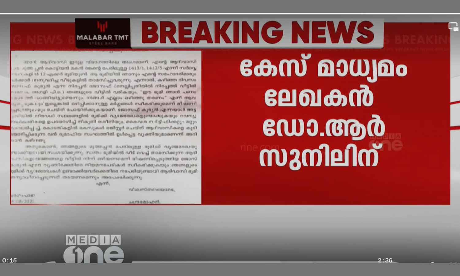 ഭൂമി കയ്യേറ്റ പരാതി വാർത്തയാക്കിയതിന് മാധ്യമപ്രവർത്തകനെതിരെ കേസ്