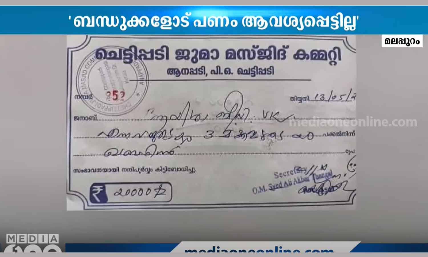 കഴിഞ്ഞ ശനിയാഴ്ച ഏതാനും യുവാക്കൾ വന്ന് സ്വമേധയാ പണം നൽകുകയായിരുന്നു. പൊതു ഫണ്ടായി പണം പിരിച്ചതാണെന്ന് പറഞ്ഞാണ് പണം നൽകിയത്. അവർ ആവശ്യപ്പെട്ടതിന്റെ അടിസ്ഥാനത്തിൽ റസീറ്റും നൽകി. അത് കഴിഞ്ഞ് ഏതാനും മണിക്കൂറുകൾക്കകം റസീറ്റ് സോഷ്യൽ മീഡിയയിൽ പ്രചരിപ്പിക്കുകയായിരുന്നുവെന്നും കമ്മിറ്റി ഭാരവാഹികൾ പറഞ്ഞു.