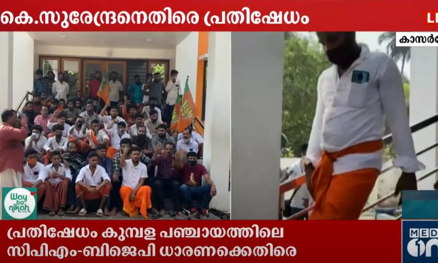 കുമ്പള പഞ്ചായത്തിലെ സ്റ്റാൻഡിങ് കമ്മിറ്റി തെരഞ്ഞെടുപ്പിൽ സി.പി.എം-ബി.ജെ.പി കൂട്ടുകെട്ടാണെന്നാണ് പ്രവർത്തകരുടെ പ്രധാന ആരോപണം. ബിജെപി പ്രവര്ത്തകരെ കൊലപ്പെടുത്തിയ കേസിലെ പ്രതിയായ സി.പി.എം പ്രവര്ത്തകനെ സ്റ്റാന്ഡിങ് കമ്മിറ്റി ചെയര്മാന് ആക്കാനുള്ള ശ്രമത്തിനിടെയാണ് ബിജെപി പ്രവര്ത്തകര് തന്നെ പ്രതിഷേധവുമായി രംഗത്തെത്തിയത്. ഈ കൂട്ടുകെട്ടിൽ അന്വേഷണവും നടപടിയും ആവശ്യപ്പെട്ട് പലതവണ നേതൃത്വവുമായി സംസാരിച്ചിട്ടും തീർപ്പുണ്ടായിരുന്നില്ലെന്നും പ്രവര്ത്തകര് പറയുന്നു.