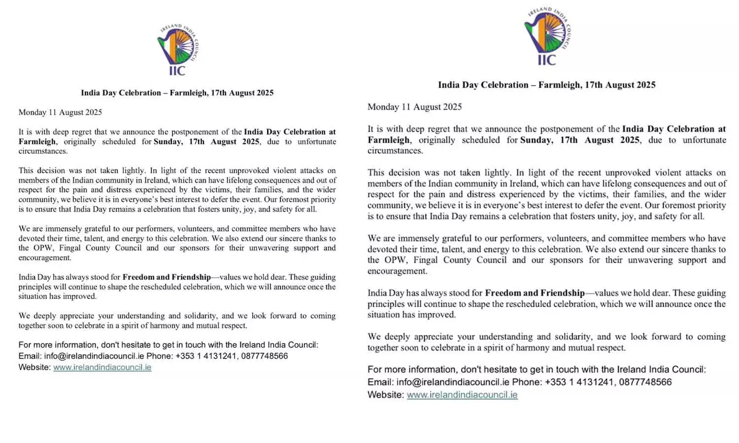 അയർലൻഡിൽ ഇന്ത്യക്കാർക്കെതിരെ ആക്രമണം വർധിക്കുന്നതിൽ ആശങ്ക; ഇന്ത്യാ ദിനാഘോഷം മാറ്റിവെച്ചു