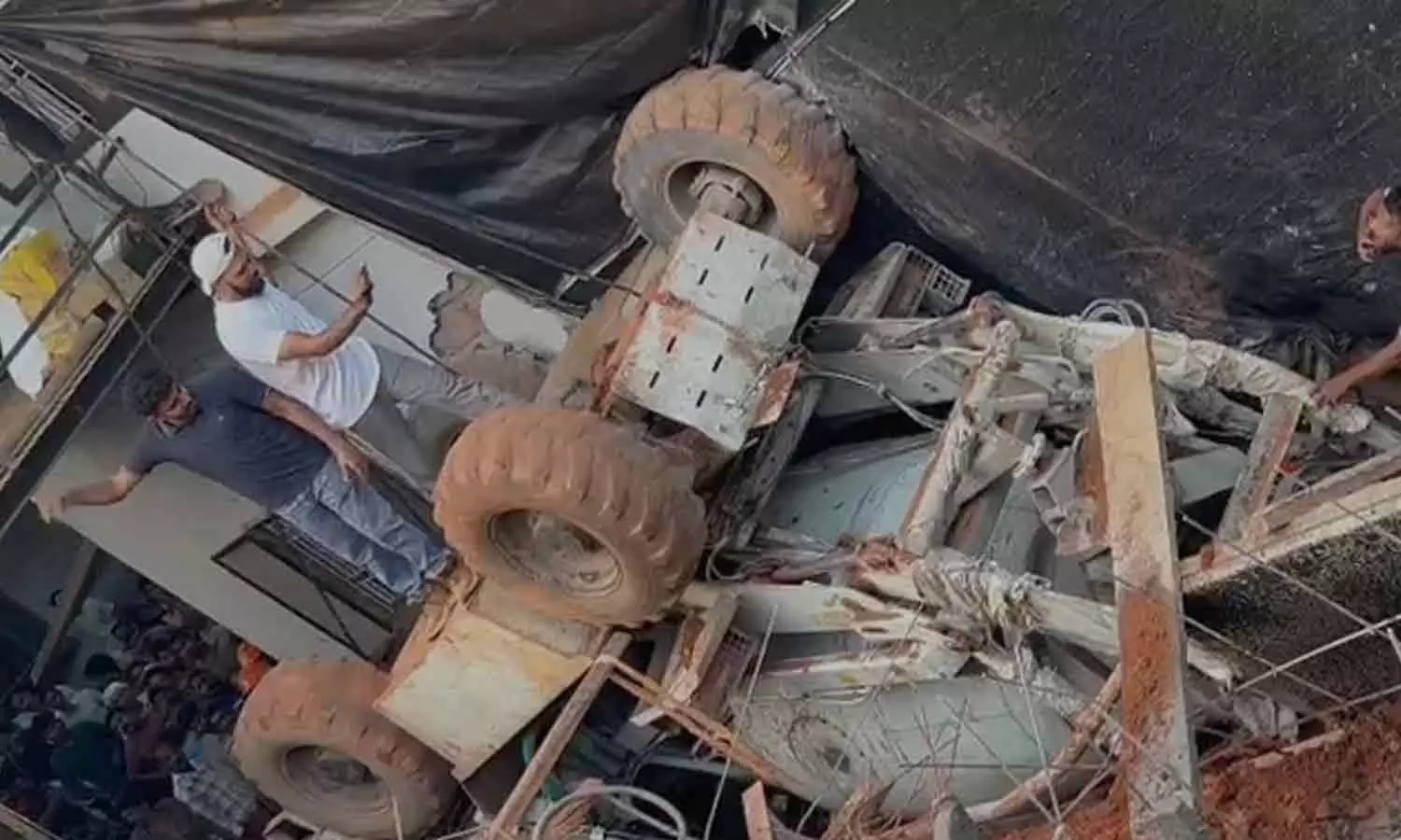 കോൺക്രീറ്റ് മിക്‌സർ മറിഞ്ഞുവീണു; രണ്ടു പേർ കുടിങ്ങിക്കിടക്കുന്നതായി സംശയം