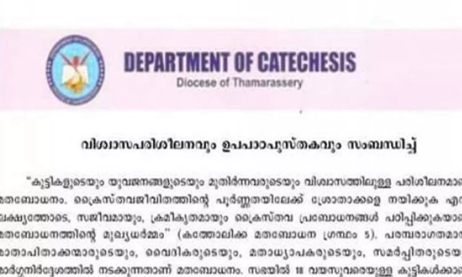 കൈപ്പുസ്തകത്തിലെ വിവാദ ഭാഗങ്ങൾ താമരശേരി രൂപത പിൻവലിച്ചു