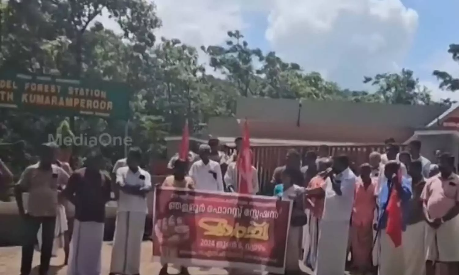കോന്നി ഞള്ളൂർ ഫോറസ്റ്റ് ഓഫീസിന് മുന്നിൽ നടത്തിയ പ്രതിഷേധ സമരം