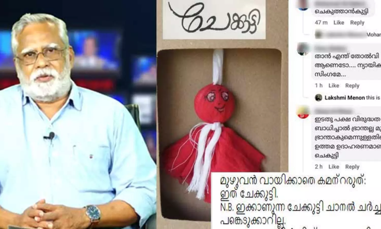N.B. ഇക്കാണുന്ന ചേക്കുട്ടി ചാനൽ ചർച്ചകളിൽ പങ്കെടുക്കാറില്ല.