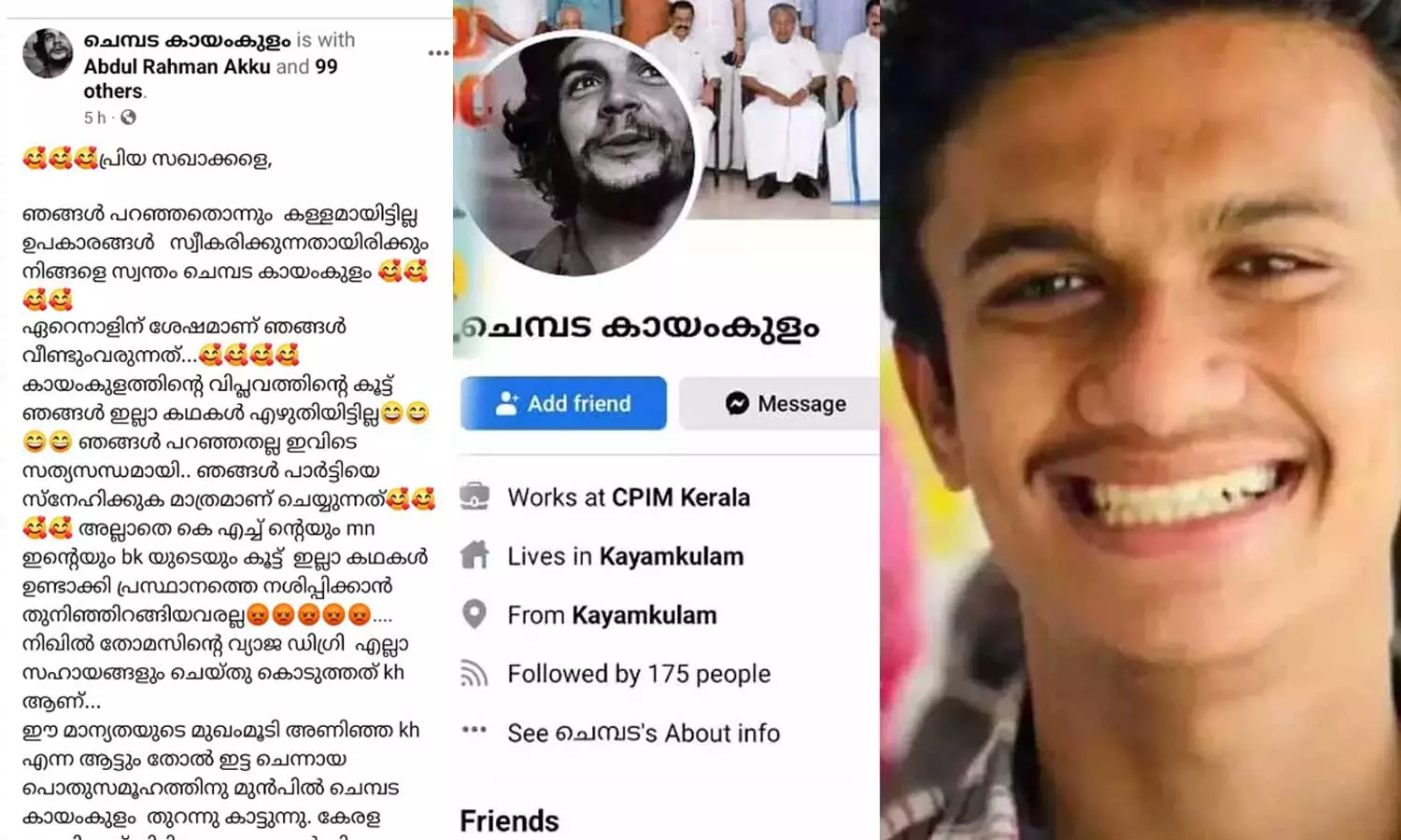 കായംകുളത്തെ വിഭാഗീതയയെതുടർന്ന് ഫേസ്ബുക്ക് അക്കൗണ്ടുകൾക്കെതിരെ സി.പി.എ പരാതി നല്കിയിരുന്നു. ഇതിന് പിന്നാലെയാണ് ചെമ്പട കായംകുളത്തിന്റെ പുതിയ പോസ്റ്റ്.