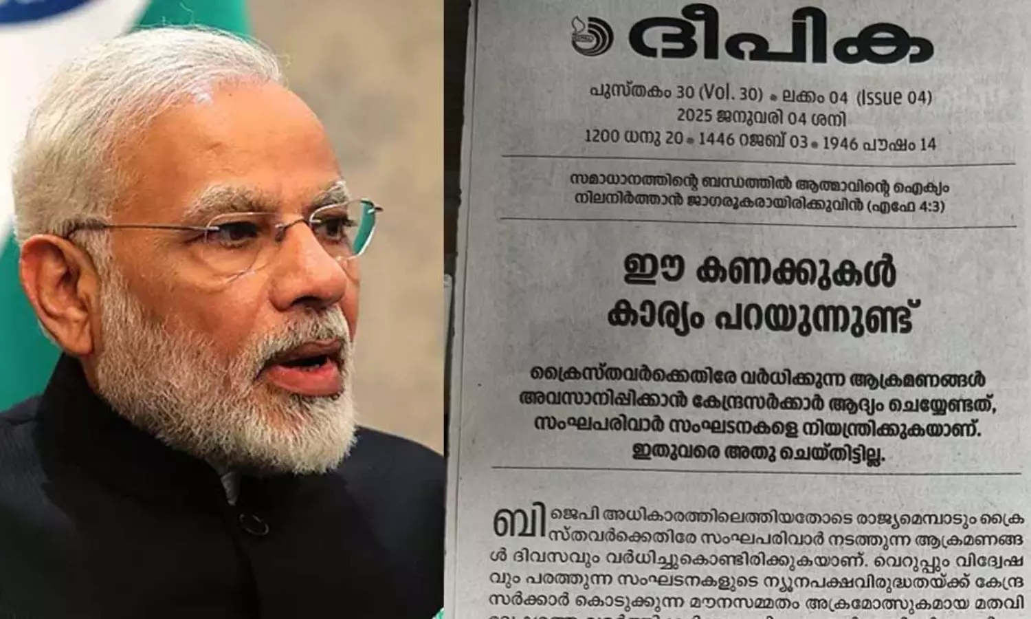 ബിജെപി മറ്റു സംസ്ഥാനങ്ങളിൽനിന്നു വ്യത്യസ്തമായ നിലപാട് കേരളത്തിലെ ക്രൈസ്തവരോടു സ്വീകരിക്കുന്നുണ്ടെങ്കിൽ അതു വോട്ട് രാഷ്ട്രീയത്തെ മുൻനിർത്തിയുള്ള അടവുനയമായി വെളിപ്പെടുകയാണ്. ഇതൊക്കെ കണ്ടില്ലെന്നു നടിക്കുകയോ ന്യായീകരിക്കുയോ ചെയ്യുന്ന വ്യക്തികളോ ക്രൈസ്തവ നാമധാരികളുടെ സംഘടനകളോ ഉണ്ടായിരിക്കാം. അത്തരം നിക്ഷിപ്ത താത്പര്യക്കാരുടെ പിന്തുണയോ ന്യായീകരണങ്ങളോ അല്ല വർധിക്കുന്ന ക്രൈസ്തവപീഡനങ്ങൾക്കുള്ള മറുപടി. ന്യൂനപക്ഷങ്ങൾക്കെതിരേയുള്ള ആക്രമണങ്ങൾ അവസാനിപ്പിക്കാൻ കേന്ദ്രസർക്കാർ ആദ്യം ചെയ്യേണ്ടത്, സംഘപരിവാർ സംഘടനകളെ നിയന്ത്രിക്കുകയാണ്; എളുപ്പമല്ലെങ്കിലും. അത്തരമൊരു നീക്കം ഇതുവരെയില്ല...മുഖപ്രസംഗത്തില് ചൂണ്ടിക്കാട്ടുന്നു.