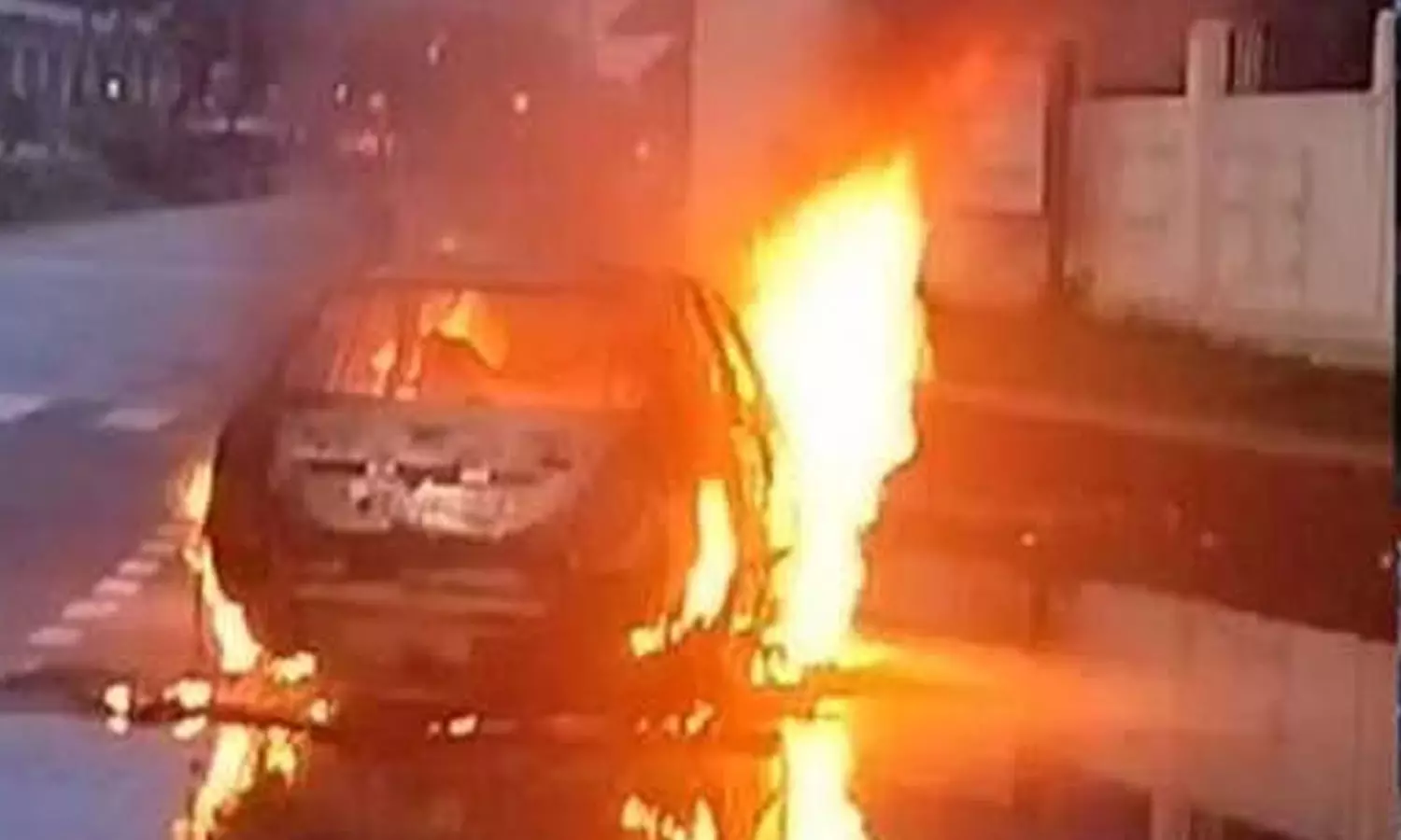 കർണാടകയിൽ പോത്തിറച്ചി കൊണ്ടുവന്ന കാർ ശ്രീരാമ സേന പ്രവർത്തകർ കത്തിച്ചു
