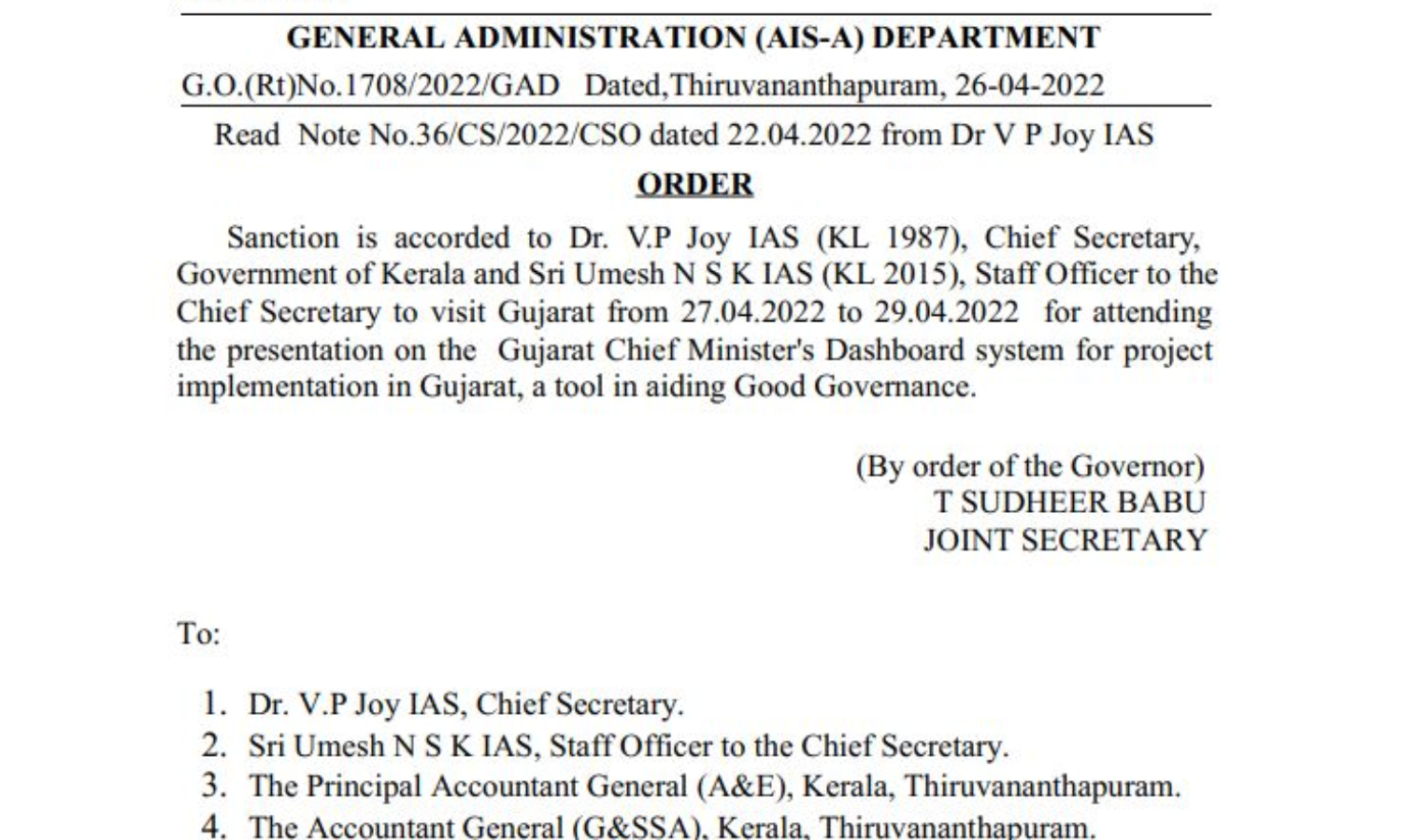 ഗുജറാത്ത് മോഡല് ഡാഷ് ബോര്ഡ് സംവിധാനം പഠിക്കാന് കേരളം; ചീഫ് സെക്രട്ടറി ഗുജറാത്തിലേക്ക്