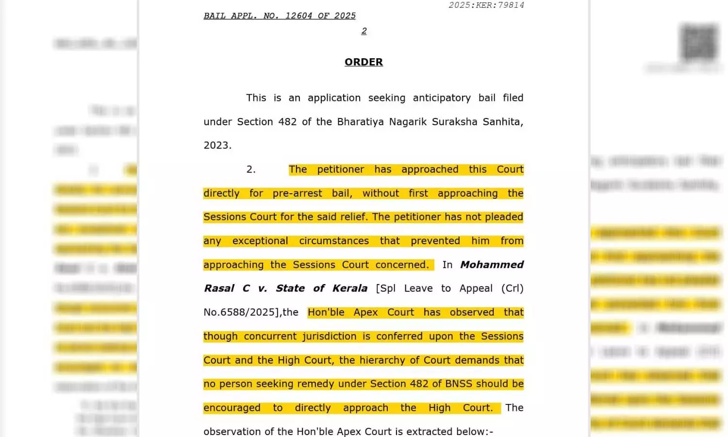 ക്രിമിനൽ കേസ് പ്രതിയായ മുഹമ്മദ് റസൽ മുൻകൂർ ജാമ്യാപേക്ഷയ്ക്കായി ഹൈക്കോടതിയെ സമീപിച്ചപ്പോഴാണ് വിമർശന സ്വഭാവത്തിൽ സുപ്രിംകോടതിയുടെ നിർദേശം. സെഷൻസ് കോടതിയിൽ പോകുന്നതിന് പകരം നേരിട്ട് ഹൈക്കോടതിയെ സമീപിക്കുന്ന പ്രവണത കേരളത്തിൽ മാത്രമേയുള്ളൂവെന്നും ഹൈക്കോടതി ഇത് അനുവദിക്കുകയും ചെയ്യുന്നുവെന്നായിരുന്നു സുപ്രിംകോടതിയുടെ വിമർശനം. അത്തരത്തിലുള്ള ജാമ്യാപേക്ഷകൾ കൈകാര്യം ചെയ്യുന്നതിൽ ഹൈക്കോടതിക്ക് തടസ്സമില്ലെന്ന് അന്ന് ചില അഭിഭാഷകർ ചൂണ്ടിക്കാട്ടിയിരുന്നു.