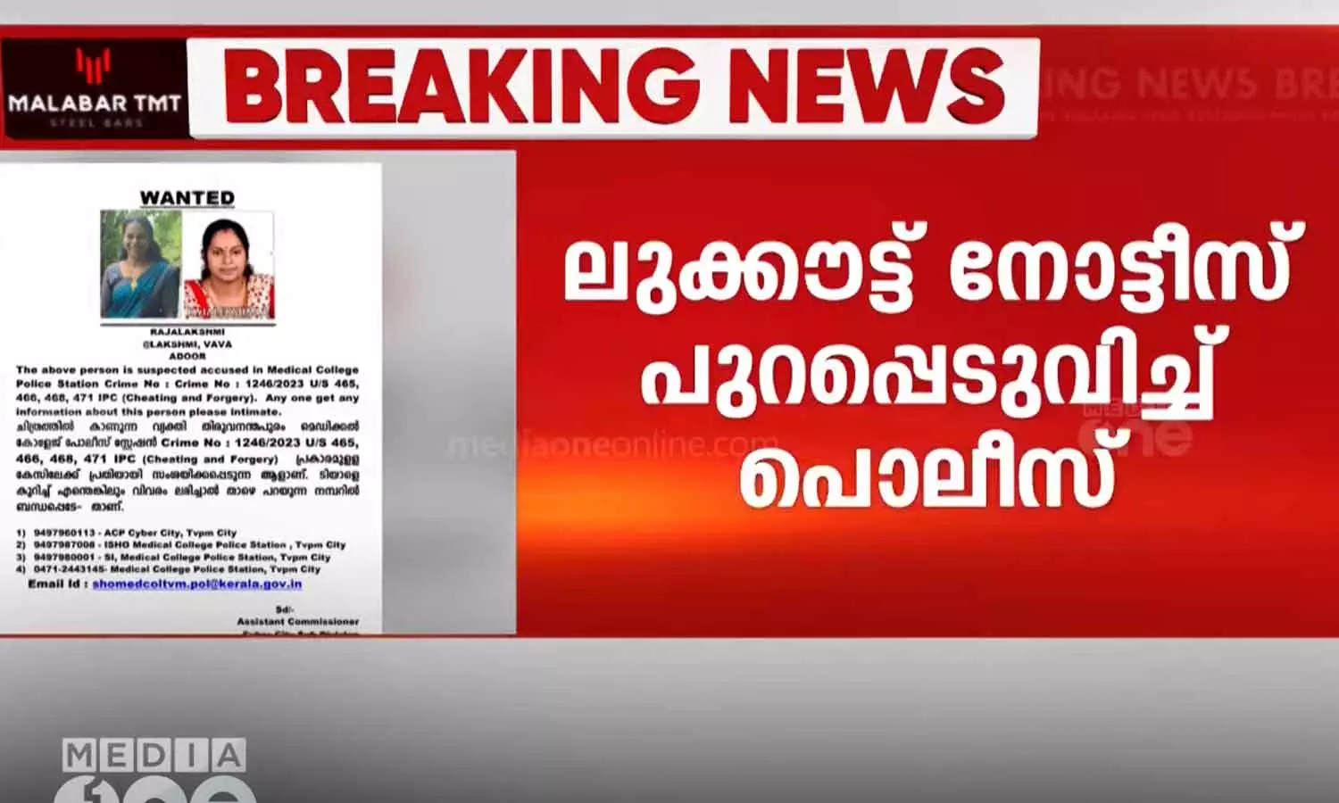 അടൂർ സ്വദേശി രാജലക്ഷ്മിക്കായാണ് ലുക്കൗട്ട് നോട്ടീസ് പുറപ്പെടുവിച്ചത്