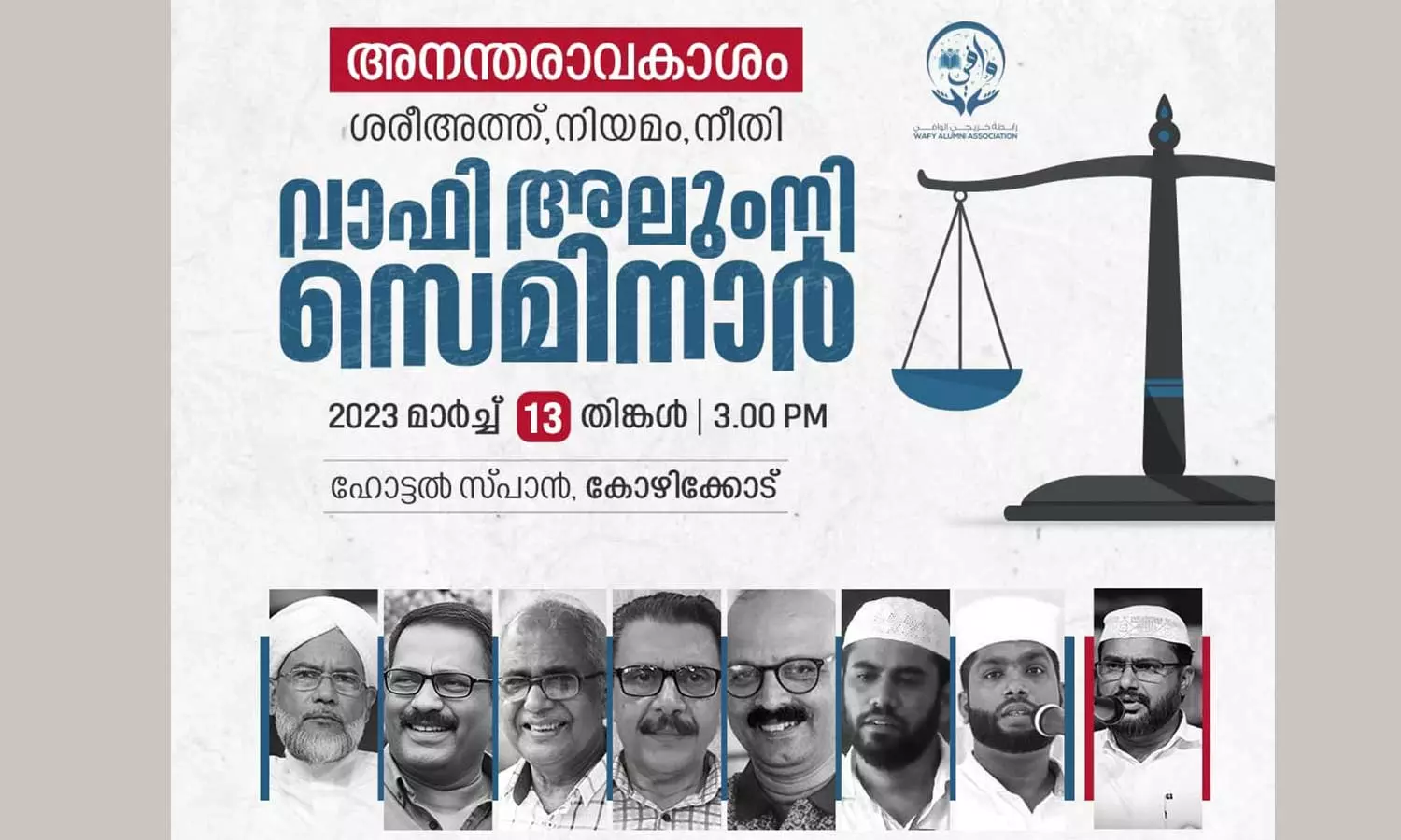 Summary: Wafy Alumni Association State Committee will organize a seminar on 'Inheritance: Shariah, Law and Justice' on Monday 13 March 2023 at 3 PM at Kozhikode