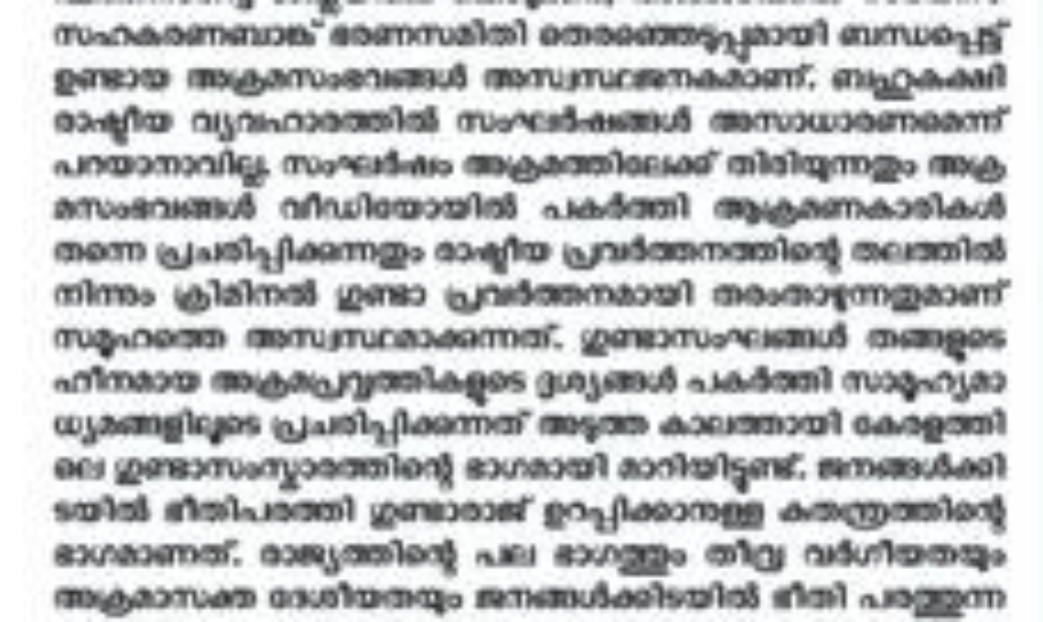 ജനാധിപത്യത്തിന്റെ ബാനറില് പ്രവര്ത്തിക്കുന്ന സംഘടനയുടെ പേരില് രംഗത്തുവന്ന ഗുണ്ടാസംഘമാണ് സി.പി.ഐ പ്രാദേശിക നേതാക്കള്ക്കും അവരുടെ വീടുകള്ക്കും നേരെ അക്രമം അഴിച്ചുവിട്ടത്. തങ്ങളുടെ പേരില് നടന്ന അക്രമസംഭവങ്ങളെ അപലപിക്കാന് ആ സംഘടന മുതിരാത്തിടത്തോളം അവര് ഗുണ്ടാസംഘങ്ങള്ക്ക് പാളയം ഒരുക്കുന്നു എന്നുവേണം കരുതാന്. സംസ്ഥാനത്തെ ജനങ്ങളുടെ ജീവനും സ്വത്തിനും സംരക്ഷണം ഉറപ്പുനല്കാന് പ്രതിജ്ഞാബദ്ധമായ ഇടതുപക്ഷ ജനാധിപത്യ മുന്നണിയുടെ അവിഭാജ്യ ഘടകമായ ഒരു സംഘടനയുടെ പേരില് അരങ്ങേറിയ അക്രമസംഭവങ്ങള് ഫലത്തില് മുന്നണിയെയും അത് നേതൃത്വം നല്കുന്ന സര്ക്കാരിനെയുമാണ് പ്രതിരോധത്തിലും പ്രതിക്കൂട്ടിലുമാക്കുന്നത്.