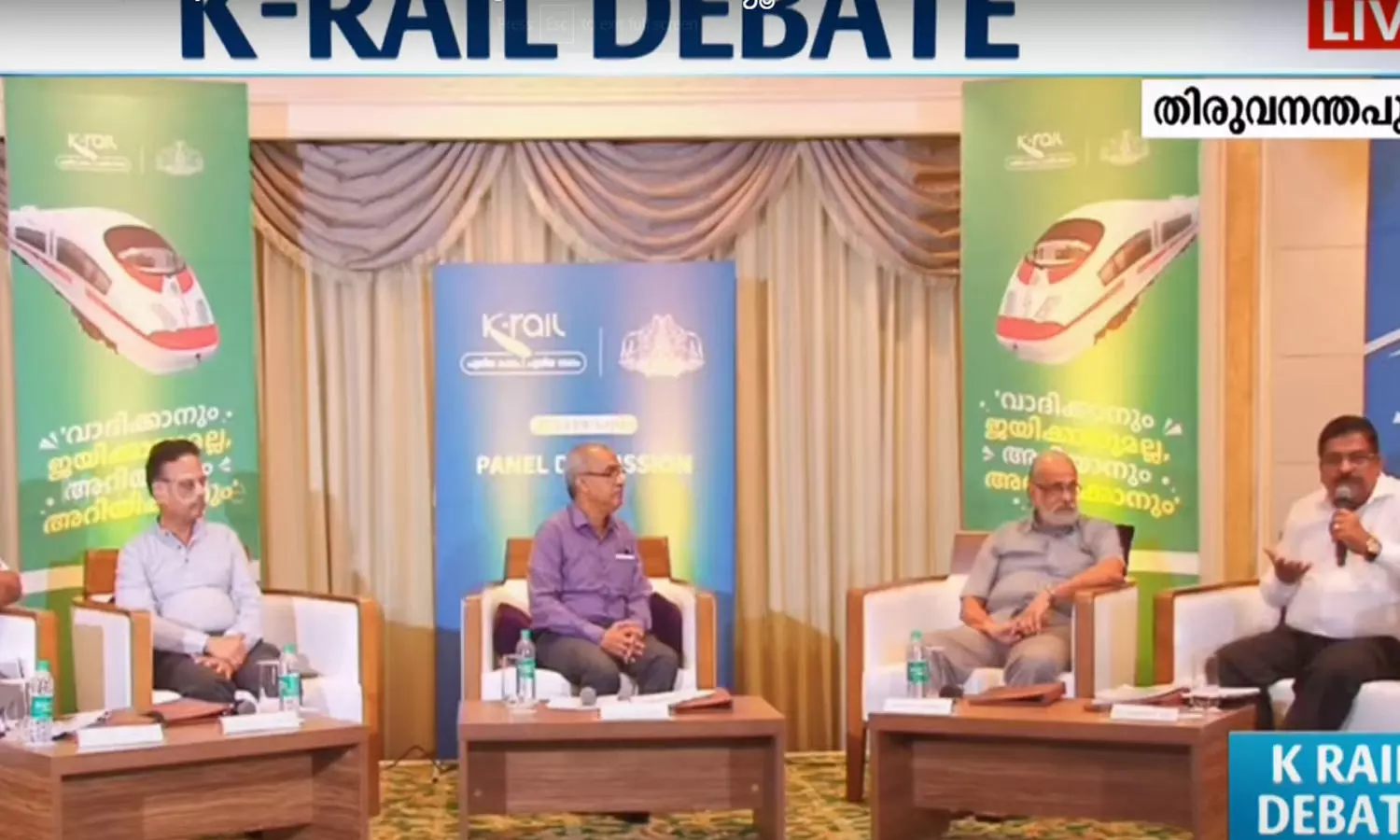 കെ റെയിൽ സംവാദം തുടങ്ങി; ആർ.വി.ജി മേനോന് കൂടുതൽ സമയം അനുവദിക്കും