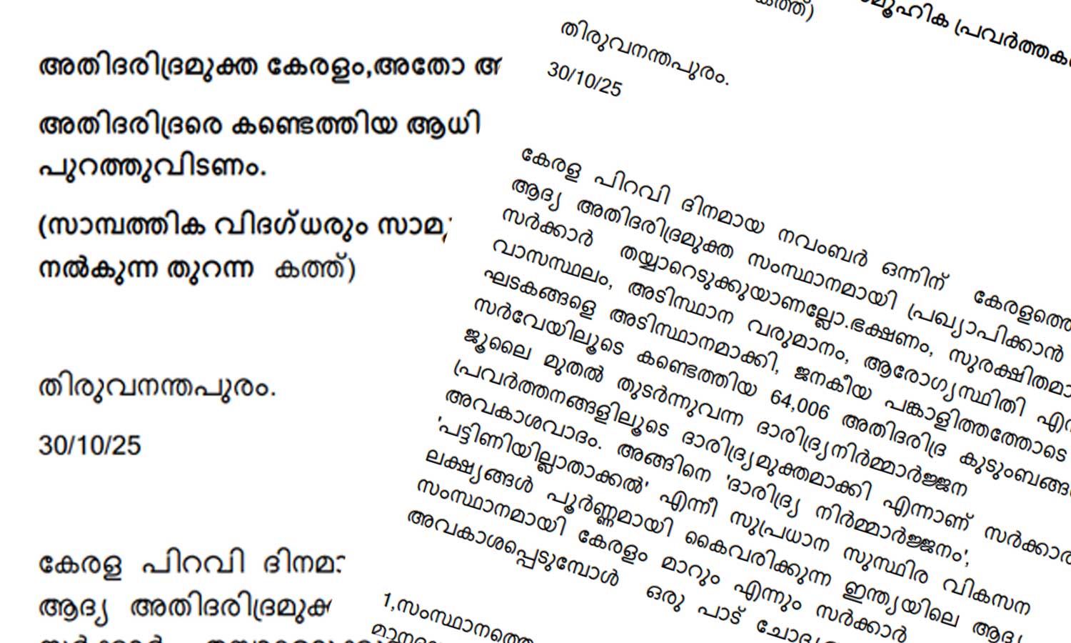അതിദാരിദ്ര്യമുക്ത കേരള പ്രഖ്യാപനം; ചോദ്യങ്ങളുമായി സാമ്പത്തിക വിദഗ്ധരും സാമൂഹിക പ്രവർത്തകരും രം​ഗത്ത്
