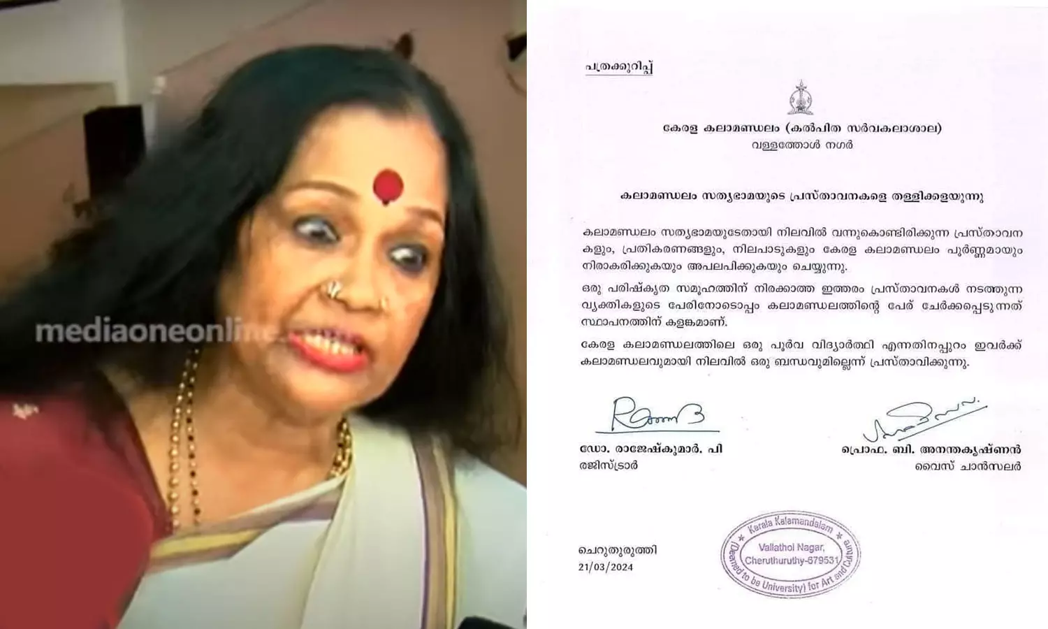 പേരിനൊപ്പം കലാമണ്ഡലം എന്ന് ചേർക്കുന്നത് സ്ഥാപനത്തിന് കളങ്കം': സത്യഭാമയെ തള്ളി കേരള കലാമണ്ഡലം