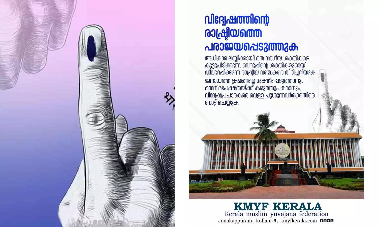 ജനായത്ത ക്രമങ്ങളെ ശക്തിപ്പെടുത്താനും മതനിരപേക്ഷതയ്ക്ക് കരുത്തുപകരാനും, വിദ്വേഷപ്രചാരകരെ വെള്ള പൂശുന്നവർക്കെതിരെ വോട്ട് ചെയ്യണമെന്നും കേരള മുസ്‌ലിം യുവജന ഫെഡറേഷൻ വ്യക്തമാക്കി.