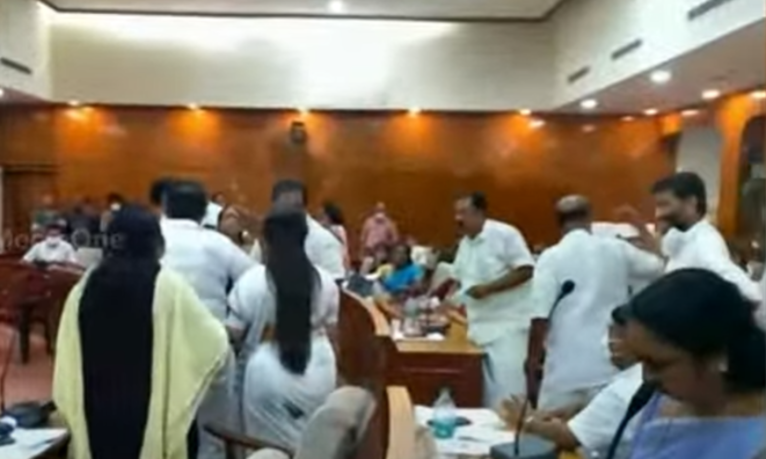 ചർച്ച വേണമെന്ന ആവശ്യം മേയർ തള്ളിയതോടെ പ്രതിപക്ഷ കൗൺസിലർമാർ ചേംബറിലെത്തി പ്രതിഷേധിക്കുകയായിരുന്നു.