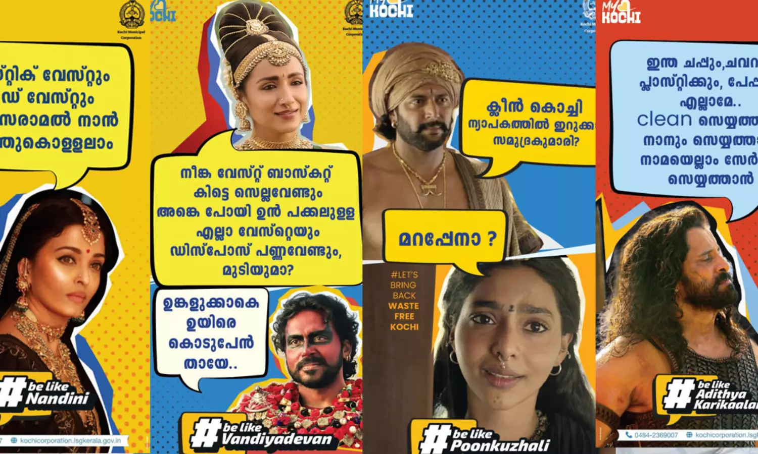 Kochi Corporation launched a different campaign for the waste management camp through posters featuring the characters of the Mani Ratnam film Ponniyan Selvan.