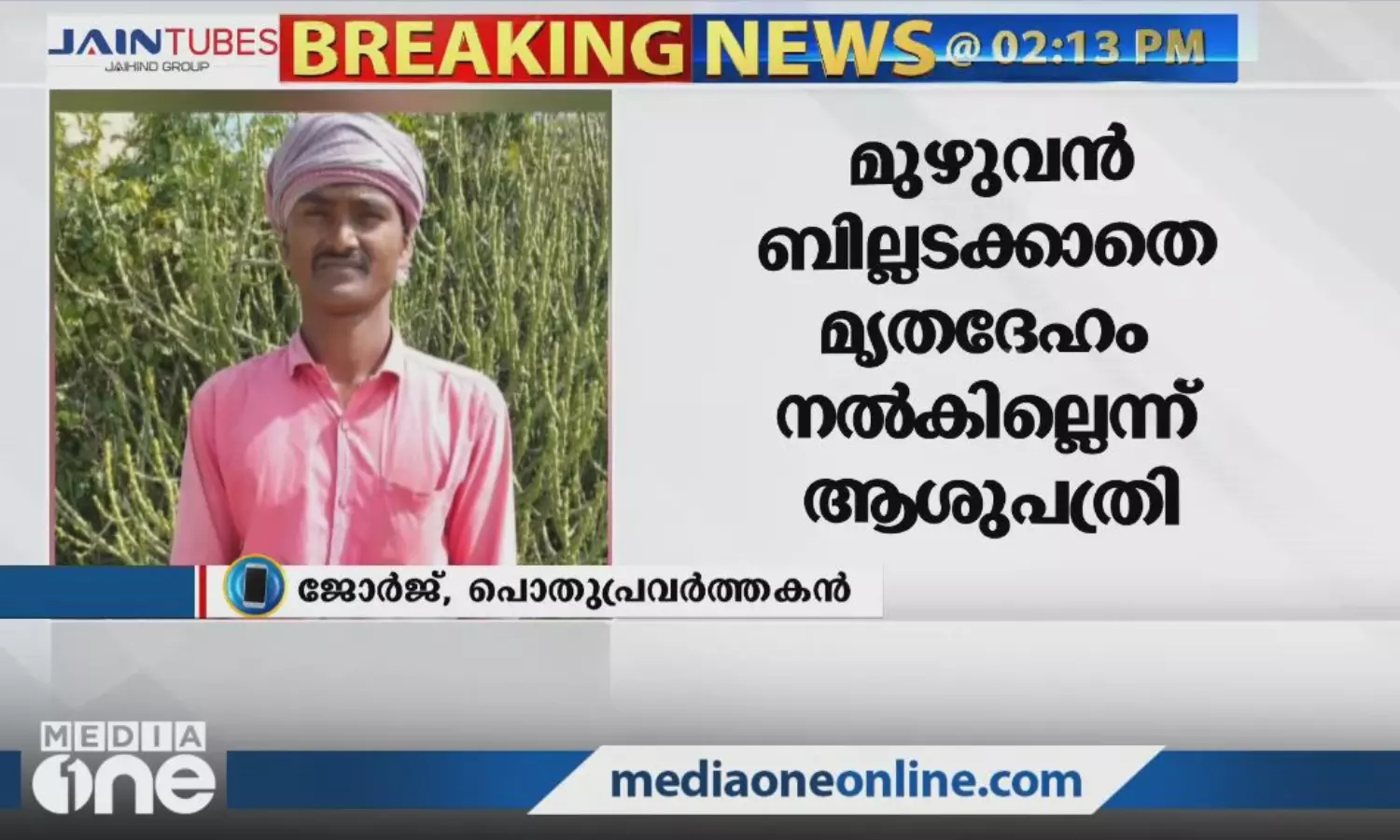 മൃതദേഹം ആശുപത്രി അധികൃതർ വിട്ട് കൊടുക്കുന്നില്ലെന്ന് പരാതി ഉയര്ന്നതിനെത്തുര്ന്ന് മീഡിയവണ് വാര്ത്ത നല്കിയതിനെത്തുടര്ന്നാണ് നടപടി