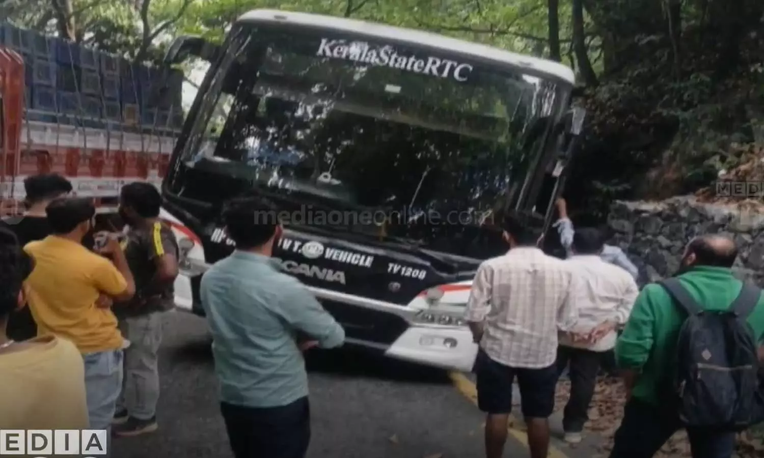 Summary: KSRTC bus stuck in sewer; Traffic jam at Thamarassery pass