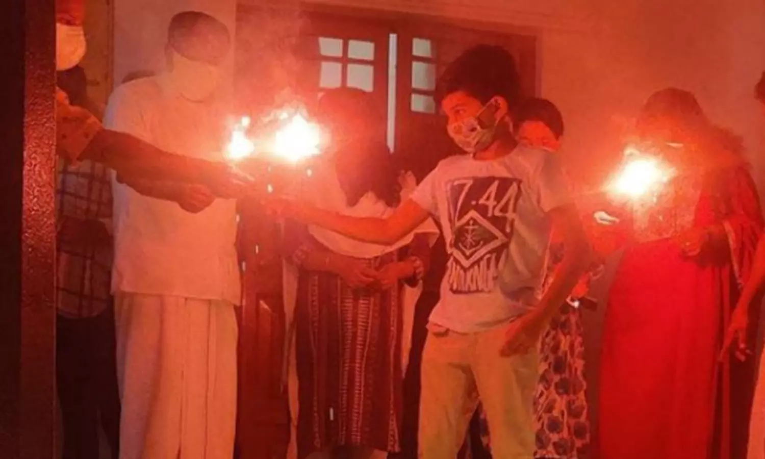 ദീപം തെളിയിച്ച് ഇടതുമുന്നണിയുടെ വിജയദിനാഘോഷം
