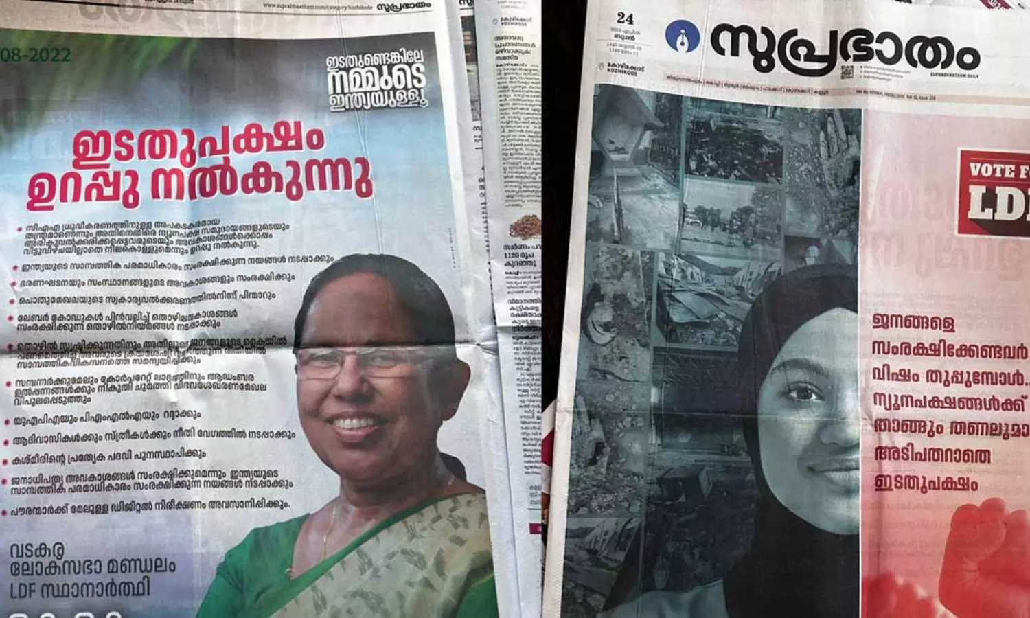 സുപ്രഭാതം ദിനപത്രത്തിൽ വീണ്ടും എല്.ഡി.എഫ് പരസ്യം