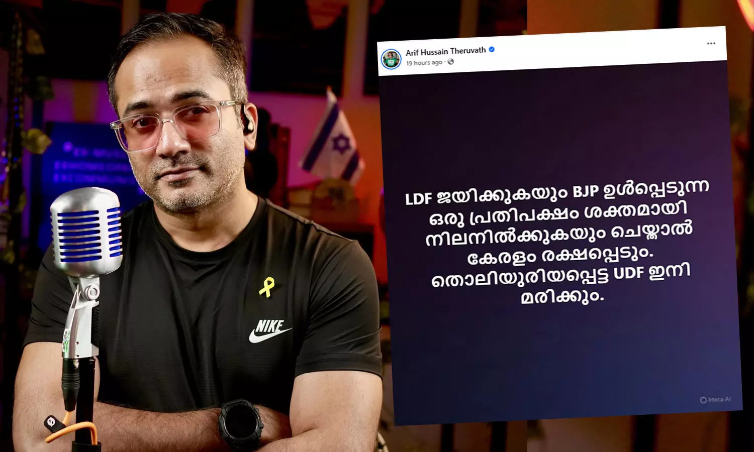 കോഴിക്കോട്: നിയമസഭാ തെരഞ്ഞെടുപ്പിൽ എൽഡിഎഫ് ജയിക്കുകയും ബിജെപി ഉൾപ്പെടുന്ന പ്രതിപക്ഷം വരികയും ചെയ്താൽ കേരളം രക്ഷപെടുമെന്ന് എക്സ് മുസ്‌ലിം നേതാവ് ആരിഫ് ഹുസൈൻ തെരുവത്ത്. തൊലിയുരിയപ്പെട്ട യുഡിഎഫ് ഇനി മരിക്കുമെന്നും തന്റെ വോട്ട് എൽഡിഎഫിനാണെന്നും ഇയാൾ ഫേസ്ബുക്ക് കുറിപ്പിലൂടെ പ്രതികരിച്ചു.