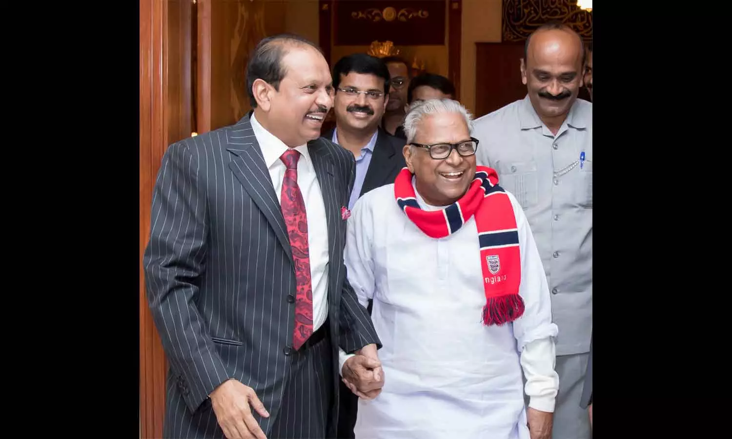കൊച്ചി രാജ്യാന്തര വിമാനത്താവളത്തിന്റെ ചെയർമാനായിരുന്ന അദ്ദേഹത്തോടൊപ്പം ഡയറക്ടർ ബോർഡംഗമായി അഞ്ച് വർഷം അടുത്ത് പ്രവർത്തിക്കാൻ സാധിച്ചിട്ടുണ്ട്. കൊച്ചി സ്മാർട്ട് സിറ്റി പദ്ധതിയുമായി ബന്ധപ്പെട്ടും അടുത്ത് ഇടപഴകാൻ ഒട്ടേറെ അവസരങ്ങൾ ഉണ്ടായിട്ടുണ്ട്. അതോടൊപ്പം കേരളത്തിലെ തന്റെ ആദ്യത്തെ സംരംഭമായ തൃശൂർ ലുലു കൺവെൻഷൻ സെന്റർ ഉദ്ഘാടനം ചെയ്യാൻ മുഖ്യമന്ത്രിയെന്ന നിലയിൽ അദ്ദേഹമെത്തിയത് ഒരിക്കലും മറക്കാൻ സാധ്യമല്ല. ചെളിയിൽ നിന്നും വിരിയിച്ച താമര എന്നായിരുന്നു കൺവെൻഷൻ സെന്ററിനെപ്പറ്റി അദ്ദേഹം അന്ന് പരാമർശിച്ചത്. ബോൾഗാട്ടി പദ്ധതിയുമായി ബന്ധപ്പെട്ട് പ്രശ്‌നങ്ങളുണ്ടായപ്പോൾ സത്യസന്ധനായ കച്ചവടക്കാരൻ എന്നായിരുന്നു അദ്ദേഹം തന്നെപ്പറ്റി പറഞ്ഞത്.