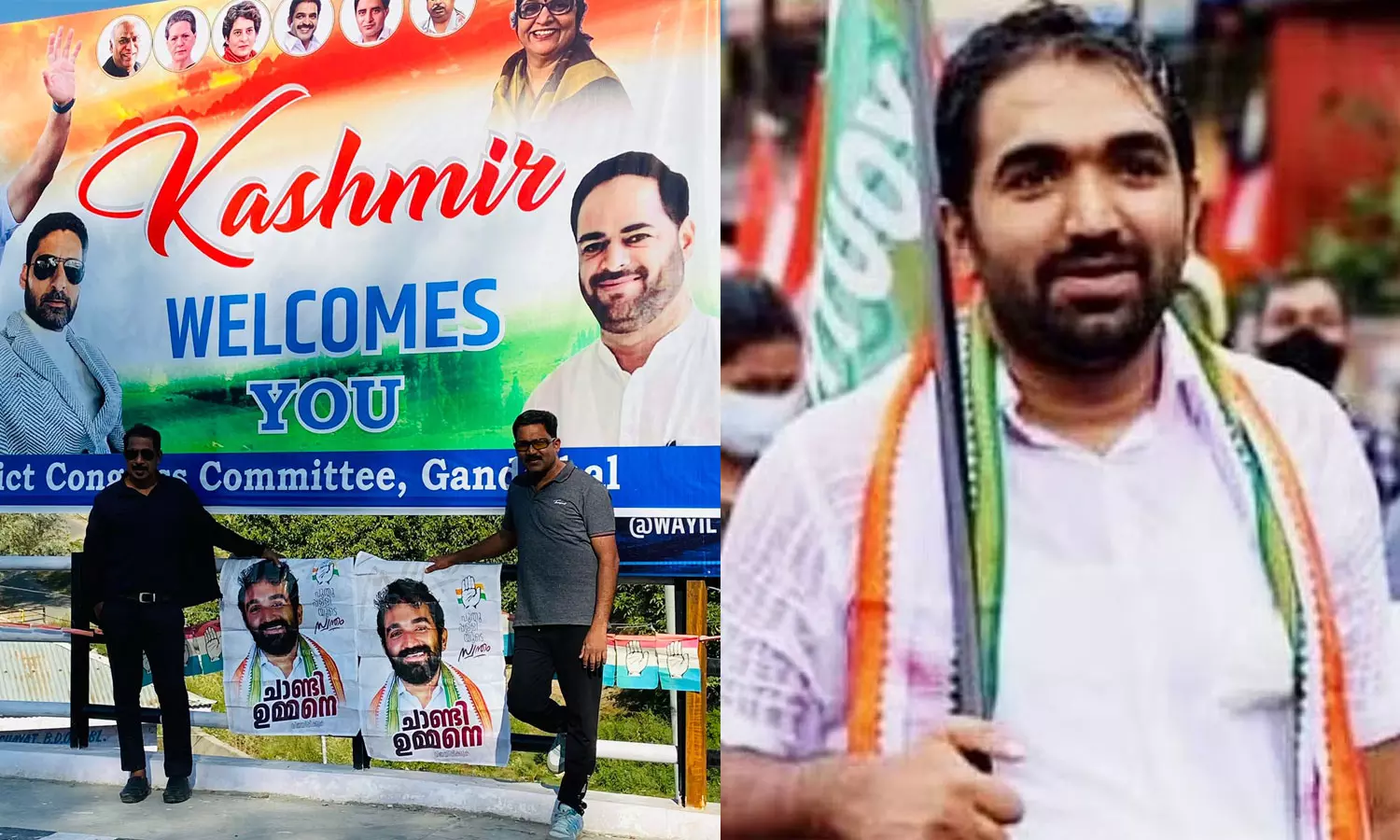 ചാണ്ടി ഉമ്മന്റെ പോസ്റ്ററുമായി കോതമംഗലം സ്വദേശികൾ കാശ്മീരിലെ വാഗാ അതിർത്തിയിൽ നിൽക്കുന്ന ചിത്രങ്ങളാണ് വ്യത്യസ്ഥ കാഴ്ചയാകുന്നത്.