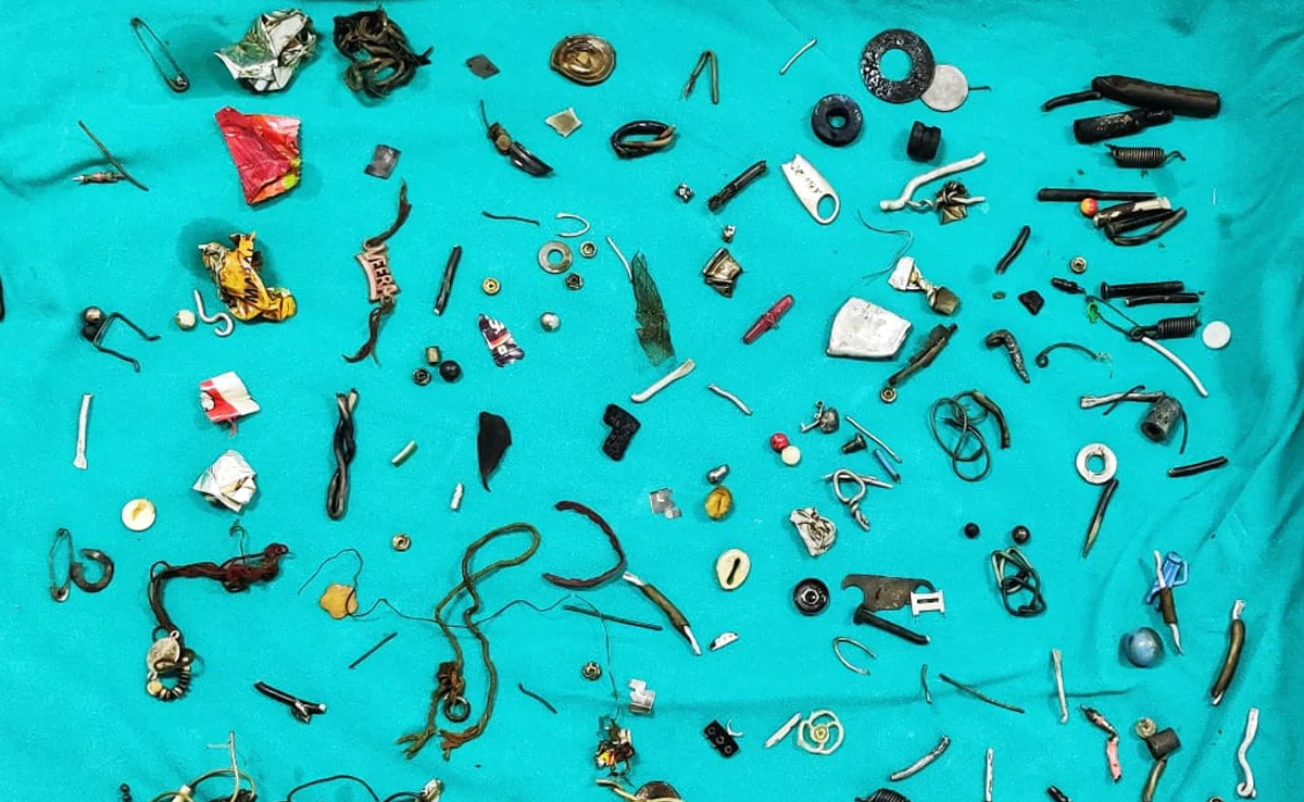 രണ്ടു ദിവസവും കടുത്ത പനിയും വയറുവേദനയും ഓക്കാനവും അനുഭവപ്പെട്ടതിനെ തുടര്ന്നാണ് യുവാവിനെ മോഗയിലെ മെഡിസിറ്റി ആശുപത്രിയില് പ്രവേശിപ്പിച്ചത്. മരുന്ന് കഴിച്ചിട്ടും വയറുവേദന മാറാത്തതിനാല് വേദനയുടെ കാരണം കണ്ടെത്താന് സ്കാന് ചെയ്യാന് തീരുമാനിക്കുകയായിരുന്നു. സ്കാനിംഗിൽ ഇയാളുടെ വയറ്റിനുള്ളിൽ നിരവധി ലോഹ വസ്തുക്കൾ ഉള്ളതായി കണ്ടെത്തി.മണിക്കൂറുകള് നീണ്ട ശസ്ത്രക്രിയക്ക് ശേഷം ഇവ പുറത്തെടുക്കുകയും ചെയ്തു. ഇയർഫോണുകൾ, വാഷറുകൾ, നട്ട്സ് ആൻഡ് ബോൾട്ടുകൾ, വയറുകൾ, രാഖികൾ, ലോക്കറ്റുകൾ, ബട്ടണുകൾ, റാപ്പറുകൾ, ഹെയർക്ലിപ്പുകൾ, ഒരു സിപ്പർ ടാഗ്, മാർബിൾ, സേഫ്റ്റി പിൻ എന്നിവ അദ്ദേഹത്തിന്റെ വയറ്റിൽ നിന്ന് പുറത്തെടുത്ത നൂറോളം വസ്തുക്കളിൽ ഉൾപ്പെടുന്നു.