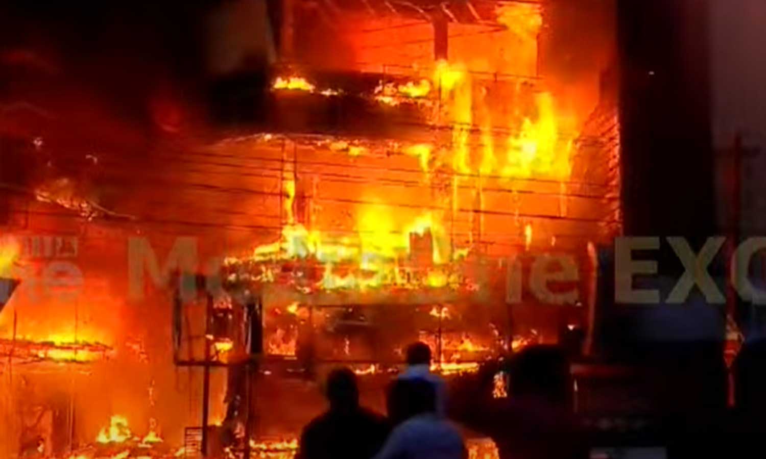 ഷോർട് സർക്യൂട്ടാണ് തീപിടിത്തത്തിന് കാരണം എന്നാണ് പ്രാഥമിക നിഗമനം. വൈകീട്ട് അഞ്ചരയോടെയാണ് തീപിടിത്തമുണ്ടായത്. കളിപ്പാട്ടങ്ങൾ വിൽക്കുന്ന കടയിൽ നിന്നാണ് ആദ്യം തീപടർന്നതെന്നാണ് വിവരം. മൊബൈല് ഷോപ്പുകളും തുണിക്കടകളും ഉള്ക്കൊള്ളുന്നതാണ് കെട്ടിടം. തീപിടിത്തത്തില് ഇതുവരെ ആളാപായം റിപ്പോര്ട്ട് ചെയ്തിട്ടില്ല. തീപിടിത്തം ശ്രദ്ധയിൽപ്പെട്ട ഉടനെ പ്രദേശത്ത് നിന്നും ആളുകൾ ഒഴിഞ്ഞതിനാൽ ആളപായം ഒഴിവായി.