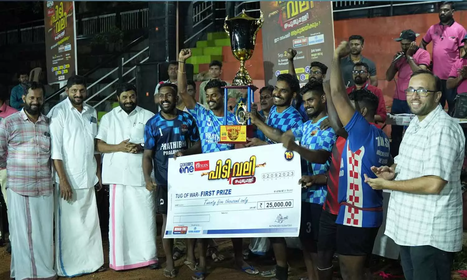 മീഡിയവൺ പത്താം വാർഷികത്തോടനുബന്ധിച്ച് പുതുപ്പള്ളിയിൽ നടത്തിയ സംസ്ഥാന വടംവലി മത്സരത്തിൻ്റെ വിജയികൾ മന്ത്രി വി.എൻ വാസവനോടൊപ്പം