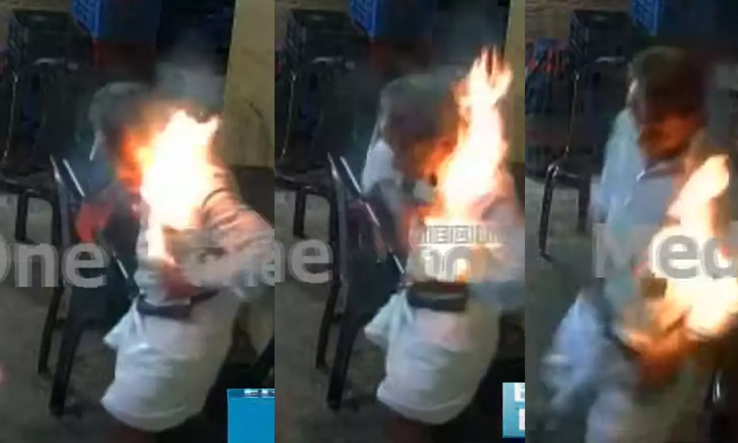 ചായ കുടിക്കാനിരിക്കെ പോക്കറ്റിലിരുന്ന മൊബൈല് ഫോൺ പൊട്ടിത്തെറിച്ചു- വീഡിയോ