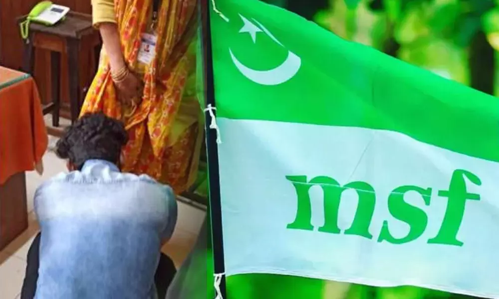 അധ്യാപിക നിര്ബന്ധിച്ച് കാല് പിടിപ്പിച്ചെന്ന പരാതിയില് വാദിയെ പ്രതിയാക്കാൻ നീക്കം നടക്കുന്നതായി എം.എസ്.എഫ്