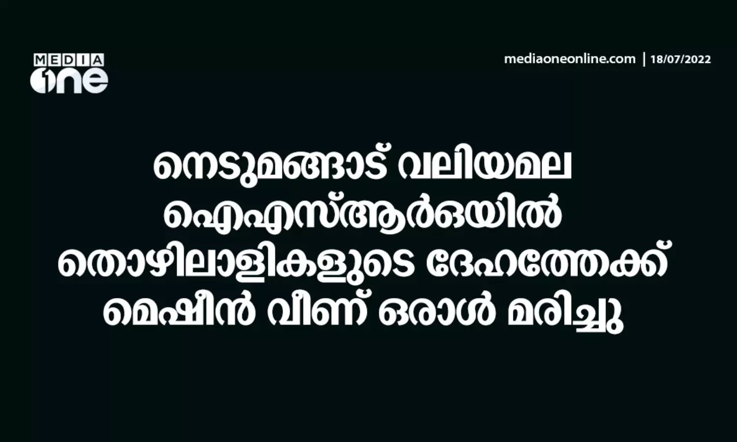 നെടുമങ്ങാട് വലിയമല ഐഎസ്ആർഒയിൽ തൊഴിലാളികളുടെ ദേഹത്തേക്ക് മെഷീൻ വീണ് ഒരാൾ മരിച്ചു