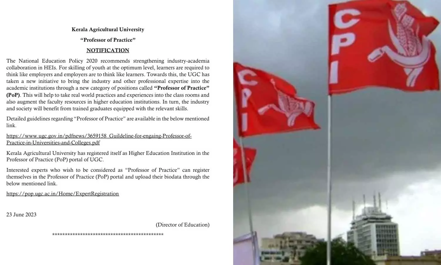 തിരുവനന്തപുരം: സിപിഐയുടെ കാർഷിക വകുപ്പിൽ ദേശീയ വിദ്യാഭ്യാസ നയം(എൻഇപി) നടപ്പിലാക്കി. കാർഷിക സർവകലാശാലയിലാണ് എൻഇപി നടപ്പിലാക്കിയത്. 2023ൽ പുറത്തിറക്കിയ വിജ്ഞാപനം ഫെബ്രുവരിയിൽ നടപ്പിലാക്കുകയായിരുന്നു. എൻഇപി പ്രകാരമുള്ള പ്രൊഫസർ ഓഫ് പ്രാക്ടീസാണ് നടപ്പിലാക്കിയത്.