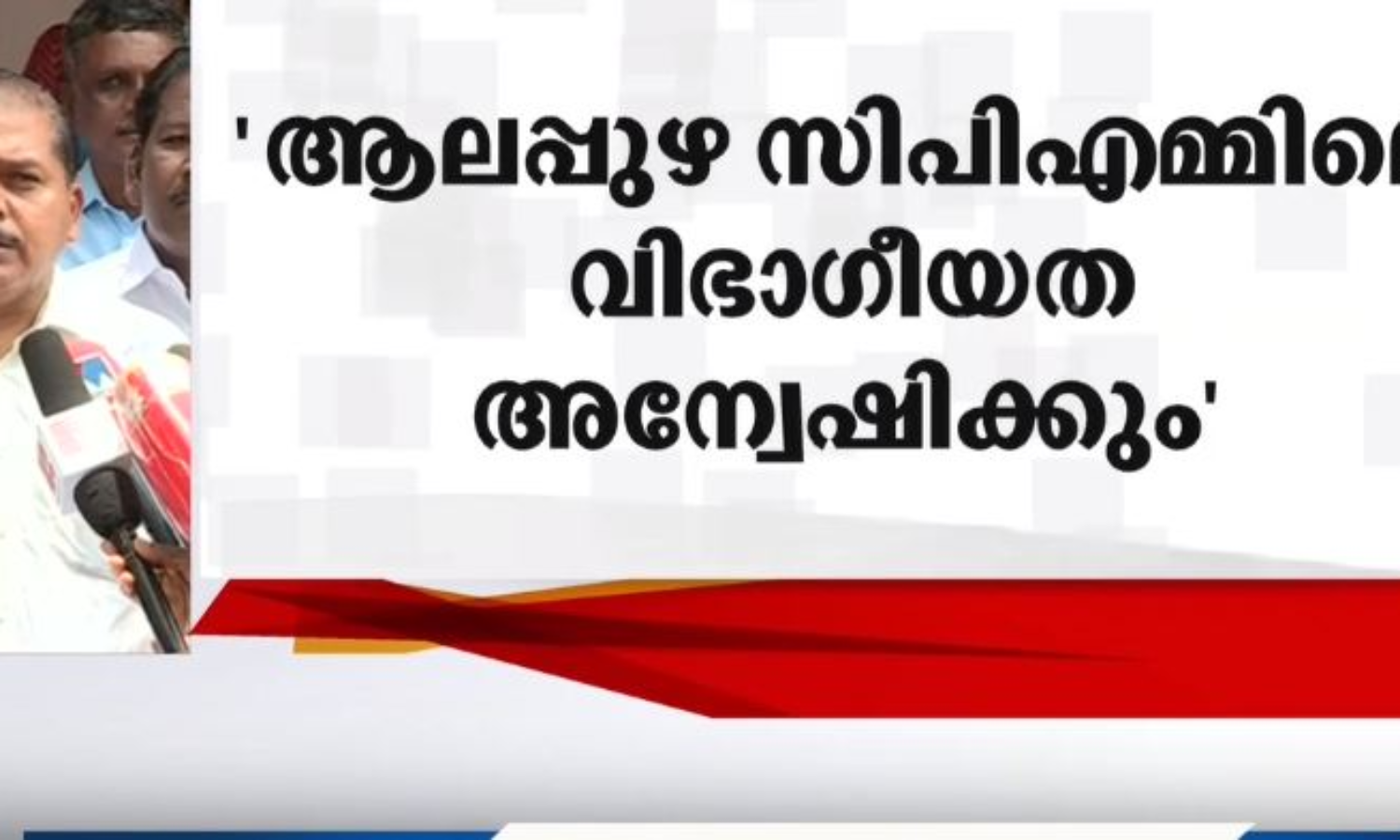 'ആലപ്പുഴ സൗത്ത്, നോർത്ത്, ഹരിപ്പാട്, തകഴി ഏരിയാ കമ്മിറ്റികളിലെ വിഭാഗീയതയാണ് സംസ്ഥാന സമിതി നിയോഗിക്കുന്ന കമ്മീഷൻ അന്വേഷിക്കുക .സി.പി.എം നേതാക്കളെ പരസ്യമായി വിമർശിച്ച യു പ്രതിഭ എംഎൽഎ തെറ്റ് പറ്റിയെന്ന് വിശദീകരണം നൽകി.വിശദീകരണം പാർട്ടിക്ക് തൃപ്തികരമായതിനാൽ നടപടി ഉണ്ടാകില്ലെന്നും ജില്ലാ സെക്രട്ടറി ആർ.നാസർ പറഞ്ഞു.