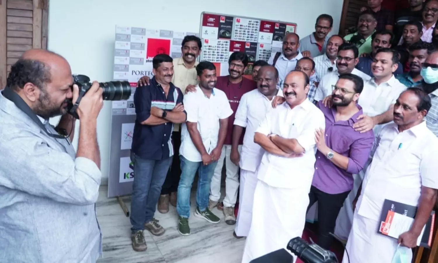 മന്ത്രി രാജീവിന്റെ ക്യാമറ, മുന്നില് ചിരിച്ചുകൊണ്ട് പ്രതിപക്ഷ നേതാവും എംഎല്എയും എംപിയും മേയറും ജയസൂര്യയും-അപൂര്വ ചിത്രം