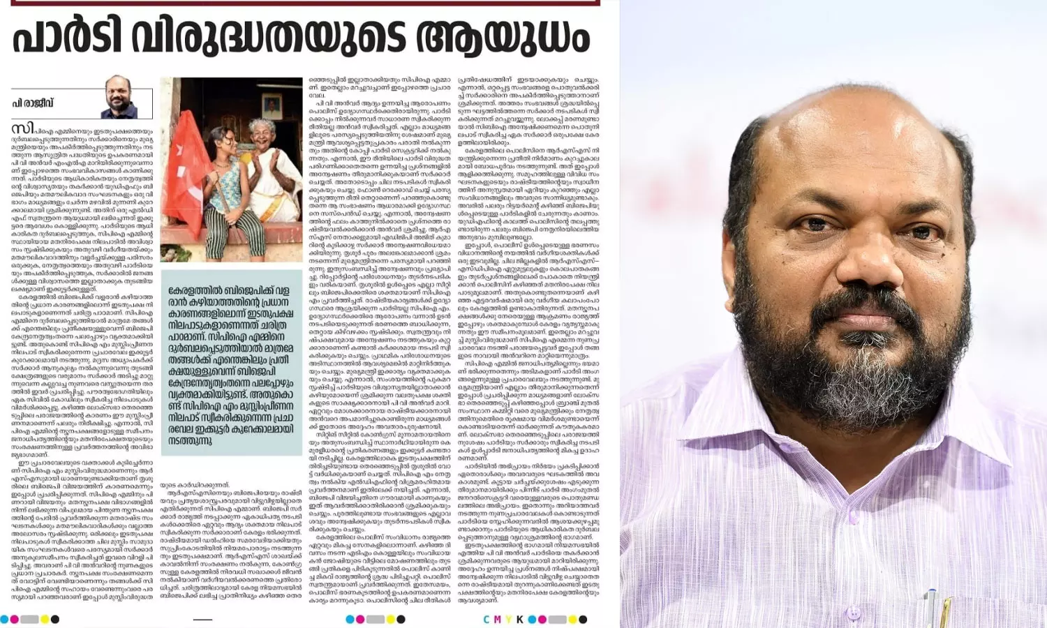 പി.വി അൻവറിനെതിരെയും രാജീവ് ലേഖനത്തിൽ എഴുതിയിട്ടുണ്ട്. ഒരു പരാതി ലഭിക്കുമ്പോൾ സാധാരണയായി ചെയ്യേണ്ട കാര്യങ്ങളല്ല അൻവർ ചെയ്തത് എന്നാണ് പ്രധാന ആരോപണം. ആദ്യം മാധ്യമങ്ങളെ കാണുന്നു. പിന്നീട് പാർട്ടിക്കും സർക്കാറിനും പരാതി നൽകുന്നു. അതൊരു തെറ്റായ കീഴ് വഴക്കമായിരുന്നു. എന്നിട്ടു പോലും അൻവറിന്റെ ആരോപണങ്ങളെ സർക്കാറും പാർട്ടിയും വളരെ ഗൗരവത്തിലാണ് കാണുന്നതെന്നും ലേഖനത്തിൽ രാജീവ് പരാമർശിക്കുന്നുണ്ട്.