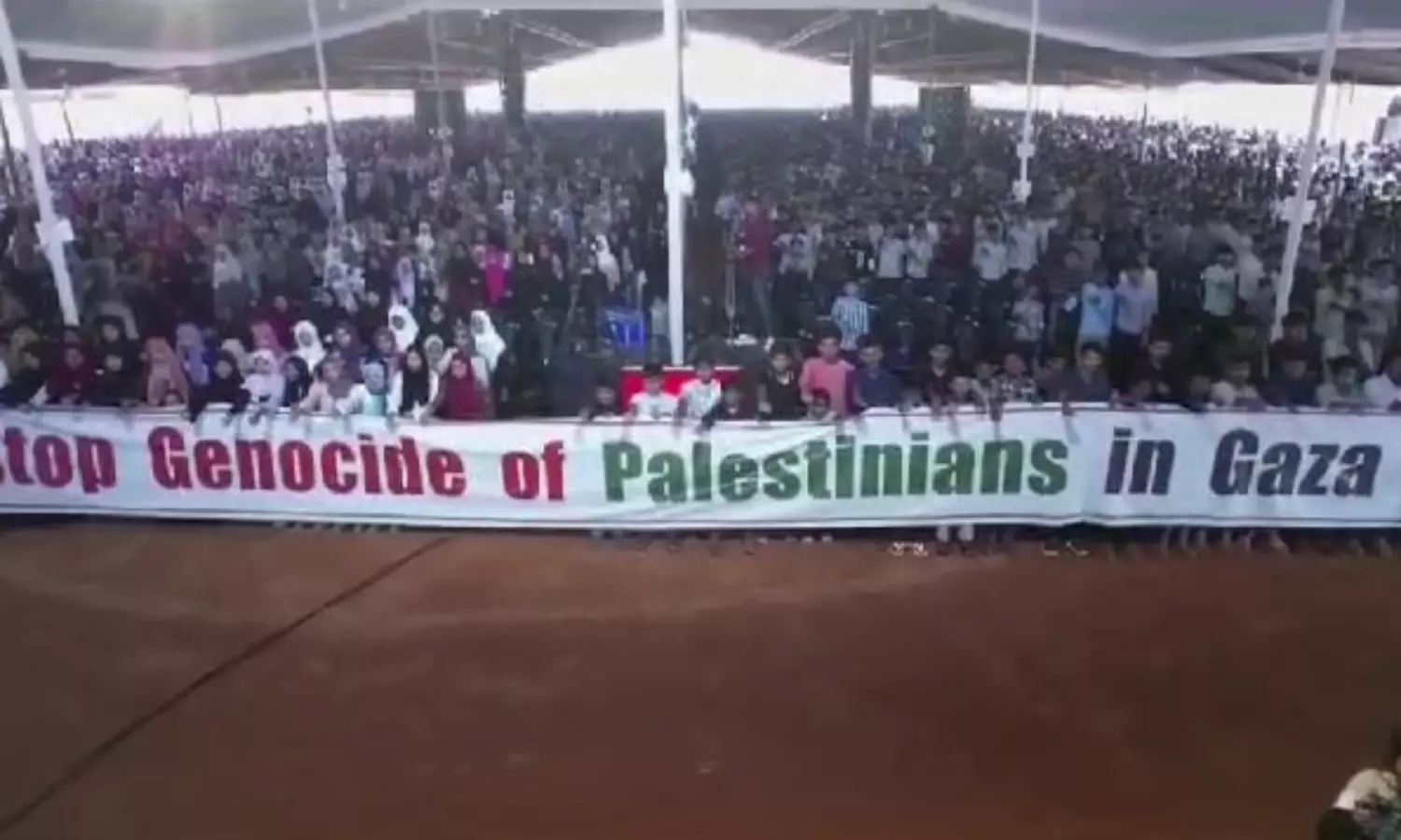 ഫലസ്തീൻ ഐക്യദാർഢ്യം; യുദ്ധവിരുദ്ധ പ്രതിജ്ഞയെടുത്ത് വിദ്യാർഥികൾ