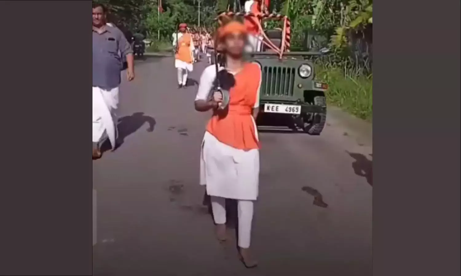 നെയ്യാറ്റിൻകര കീഴാറൂർ സരസ്വതി വിദ്യാലയത്തിൽ ദിവസങ്ങളോളം നീണ്ടുനിന്ന ദുർഗവാഹിനി ക്യാമ്പിൻറെ സമാപന ദിനത്തിലായിരുന്നു ആയുധമേന്തി പ്രകടനം. പഥസഞ്ചലനത്തിന് മുന്നിലും പിന്നിലുമായി പത്തോളം വാളുകളേന്തിയാണ് വനിതകൾ നടുറോഡിലൂടെ പ്രകടനം നടത്തിയത്. കഴിഞ്ഞ ഞായറാഴ്ച നടന്ന സംഭവത്തിനെതിരെ പൊപ്പുലർഫ്രണ്ട് പരാതി കൊടുത്തിട്ടും പൊലീസ് നിസംഗത തുടരുകയാണ്. ആർക്കുമെതിരെ ഇതുവരെ ഒരുനടപടിയും എടുത്തിട്ടില്ല.