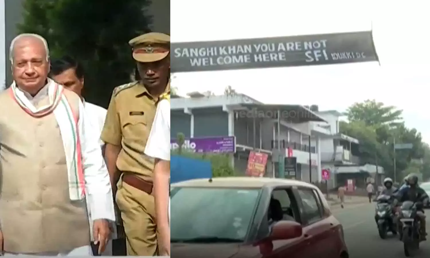തൊടുപുഴയിലാണ് ഗവർണർക്കെതിരെ എസ്.എഫ്.ഐയുടെ പ്രതിഷേധ ബാനർ ഉയർന്നിരിക്കുന്നത്. സംഘി ഖാന് പ്രവേശനമില്ലെന്നാണു ബാനറിൽ പറയുന്നത്. എസ്.എഫ്.ഐ ഇടുക്കി ജില്ലാ കമ്മിറ്റിയാണ് ബാനർ ഉയർത്തിയത്. ഇടുക്കി ജില്ലയുടെ അതിർത്തിയിൽ റോഡിന് കുറുകെയാണ് ബാനർ കെട്ടിയിരിക്കുന്നത്.