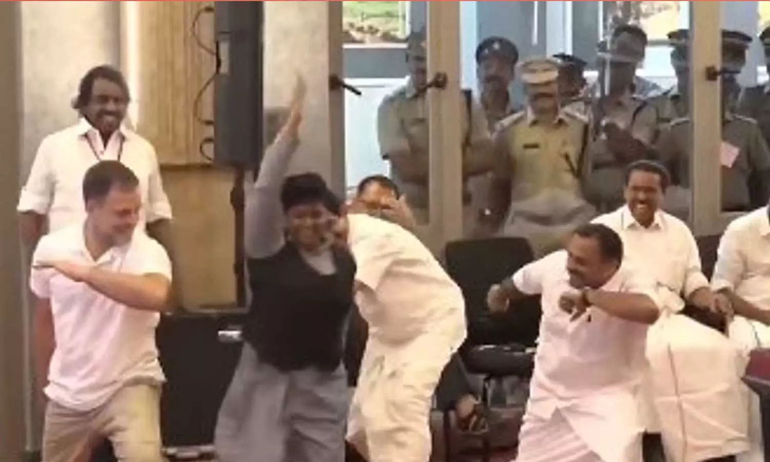 വിദ്യാർഥികൾക്കൊപ്പം കളരിപ്പയറ്റ് അഭ്യസിച്ച് രാഹുൽ ഗാന്ധി; ഒപ്പം ചുവട് പിടിച്ച് ഡീനും കെ.സി വേണുഗോപാലും