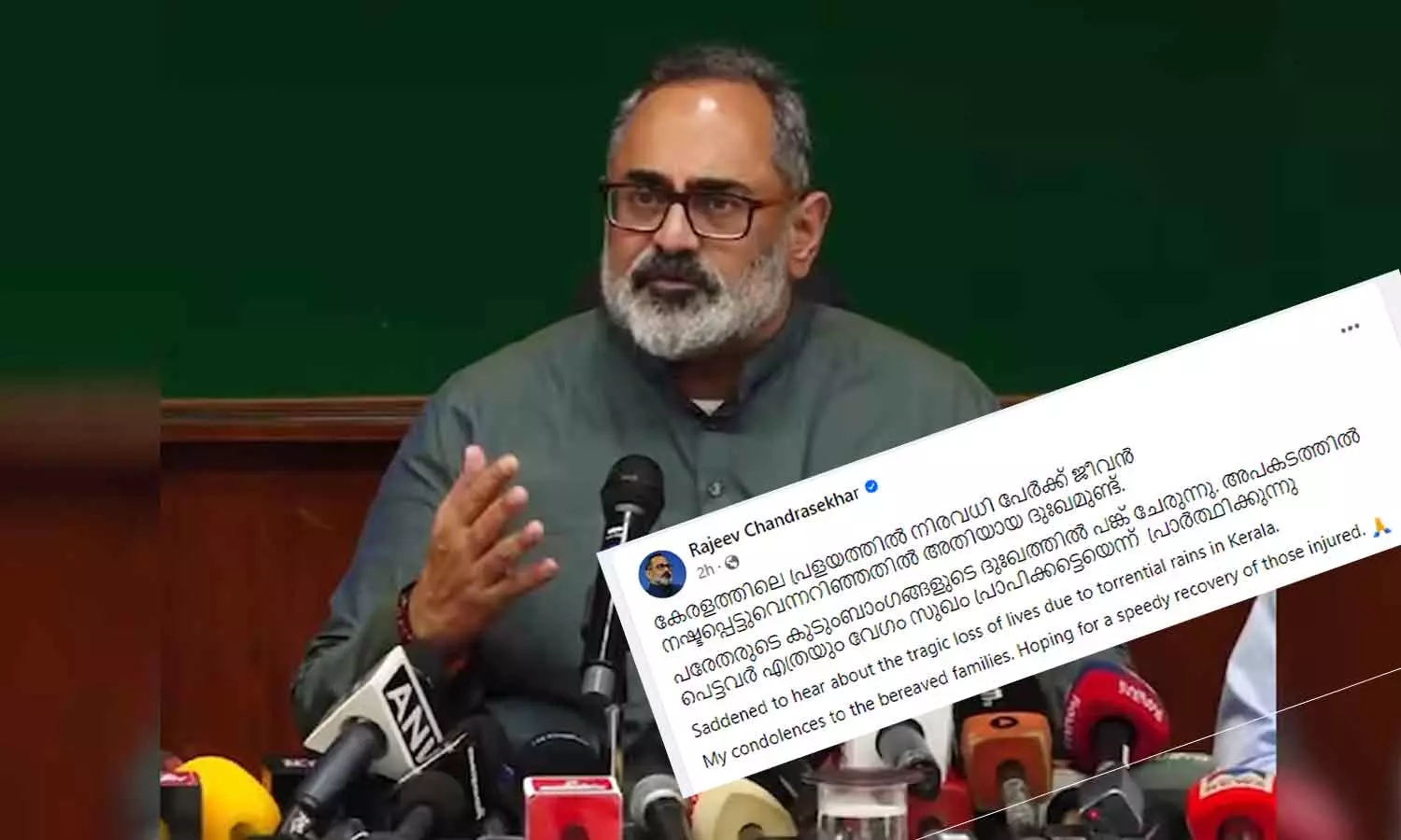 'കേരളത്തിലെ പ്രളയത്തിൽ നിരവധി പേർക്ക് ജീവൻ നഷ്ടപ്പെട്ടതിൽ അതിയായ ദുഃഖമുണ്ട്'; ഫേസ്ബുക്ക് പോസ്റ്റുമായി കേന്ദ്രമന്ത്രി രാജീവ് ചന്ദ്രശേഖർ