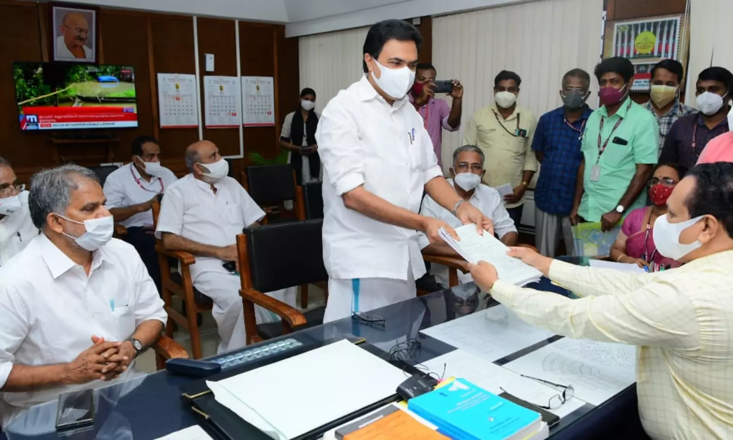 എൽഡിഎഫ് കൺവീനറും സിപിഎം ആക്ടിങ് സെക്രട്ടറിയുമായ എ വിജയരാഘവൻ, സിപിഐ അസിസ്റ്റന്റ് സെക്രട്ടറി കെ. പ്രകാശ് ബാബു, മന്ത്രിമാരായ ജി.ആർ. അനിൽ, എ.കെ.ശശീന്ദ്രൻ, റോഷി അഗസ്റ്റിൻ, ചീഫ് വിപ്പ് ഡോ. എൻ. ജയരാജ്, തോമസ് ചാഴികാടൻ എംപി, എംഎൽഎമാരായ മാത്യു ടി. തോമസ്, ജോബ് മൈക്കിൾ, സെബാസ്റ്റിയൻ കുളത്തിങ്കൽ, കേരളാ കോൺഗ്രസ് എം ഓഫീസ് ചാർജ് ജനറൽ സെക്രട്ടറി സ്റ്റീഫൻ ജോർജ് തുടങ്ങിയവർ അനുഗമിച്ചു.