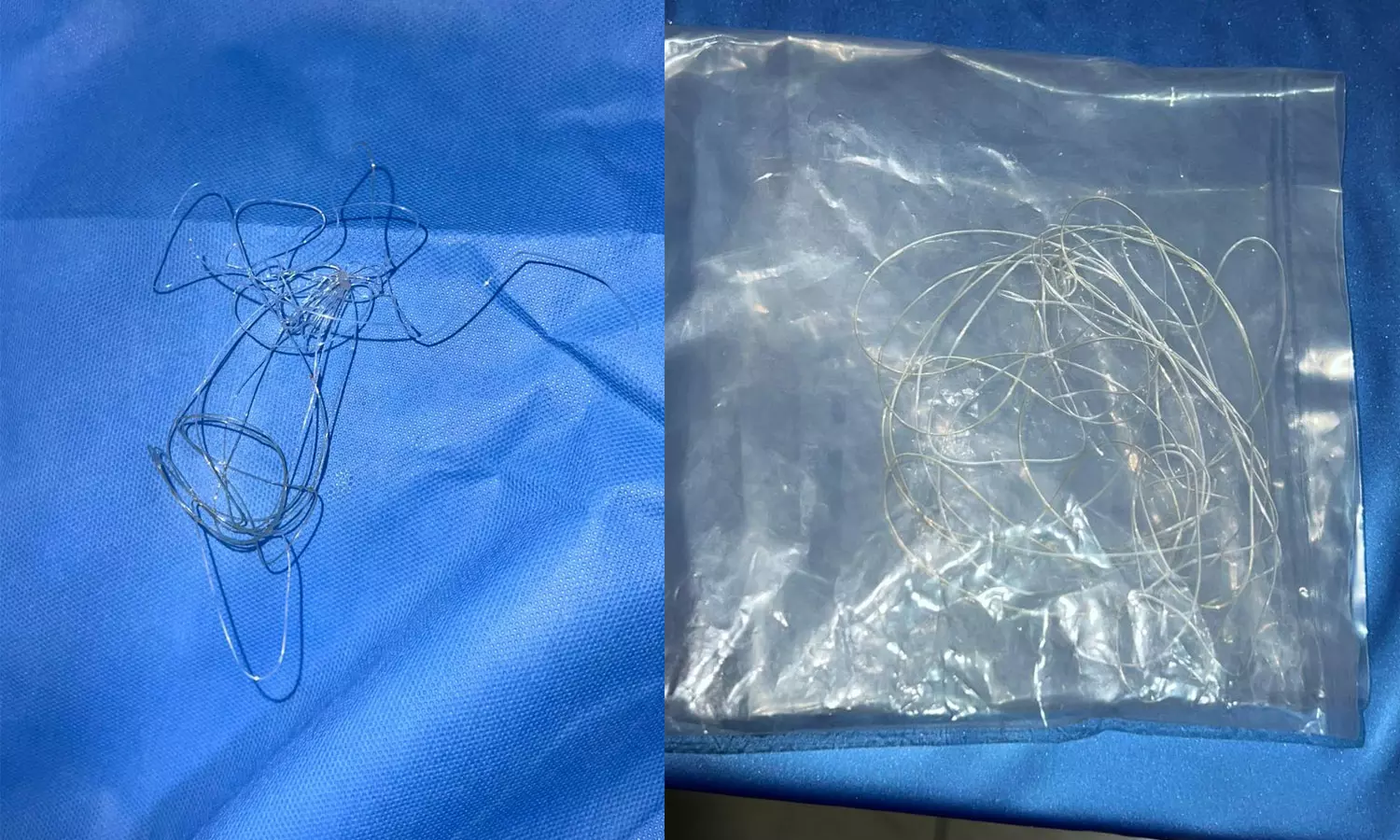 യുവാവിന്റെ മൂത്രസഞ്ചിയിൽ കുടുങ്ങിയ 2.8 മീറ്റർ നീളമുള്ള ചൂണ്ട നൂൽ ശസ്ത്രക്രിയയിലൂടെ പുറത്തെടുത്തു