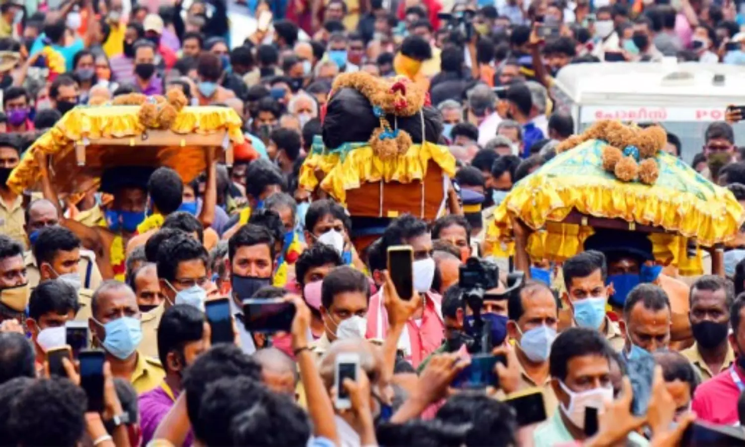 കോവിഡ് മഹാമാരിയെ തുടര്ന്ന് ആചാരപരമായ ചടങ്ങുകള് മാത്രം നടത്തിയാണ് മുന് വര്ഷങ്ങളില് തിരുവാഭരണ ഘോഷയാത്ര നടത്തിയിരുന്നത്