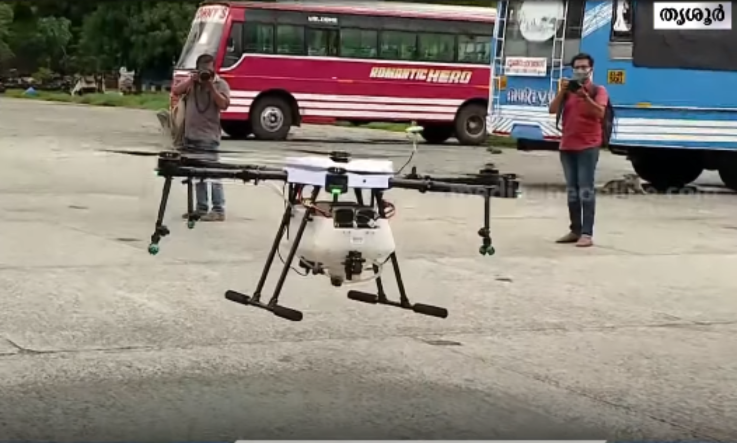 ഡ്രോൺ ഉപയോഗിച്ച് അണുനശീകരണം നടത്തി തൃശ്ശൂര് കോര്പ്പറേഷന്